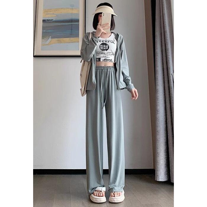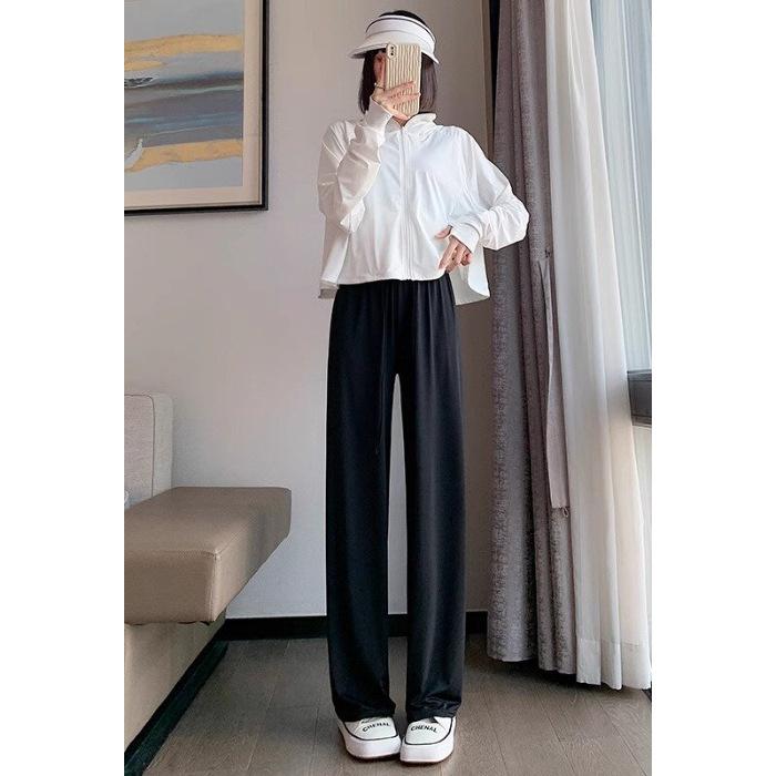 Узкая версия солнцезащитных брюк Ice Silk с широкими штанинами для женщин, летние брюки с высокой талией, облегающие, прямые, повседневные брюки