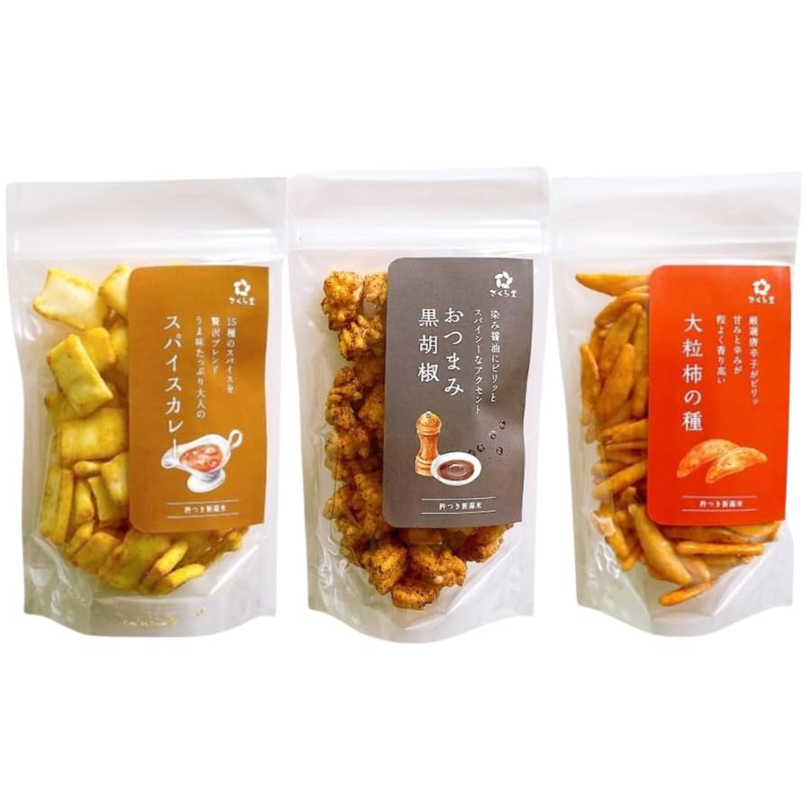 Содержимое 〇Сыр камамбер окаки 80 г 〇Специя карри для взрослых 80 г 〇Закуски из черного перца 65 г 〇Крупные семена хурмы 80 г 〇Сытная жареная во фритюре курица 60 г 〇Сладкий мед 65 г