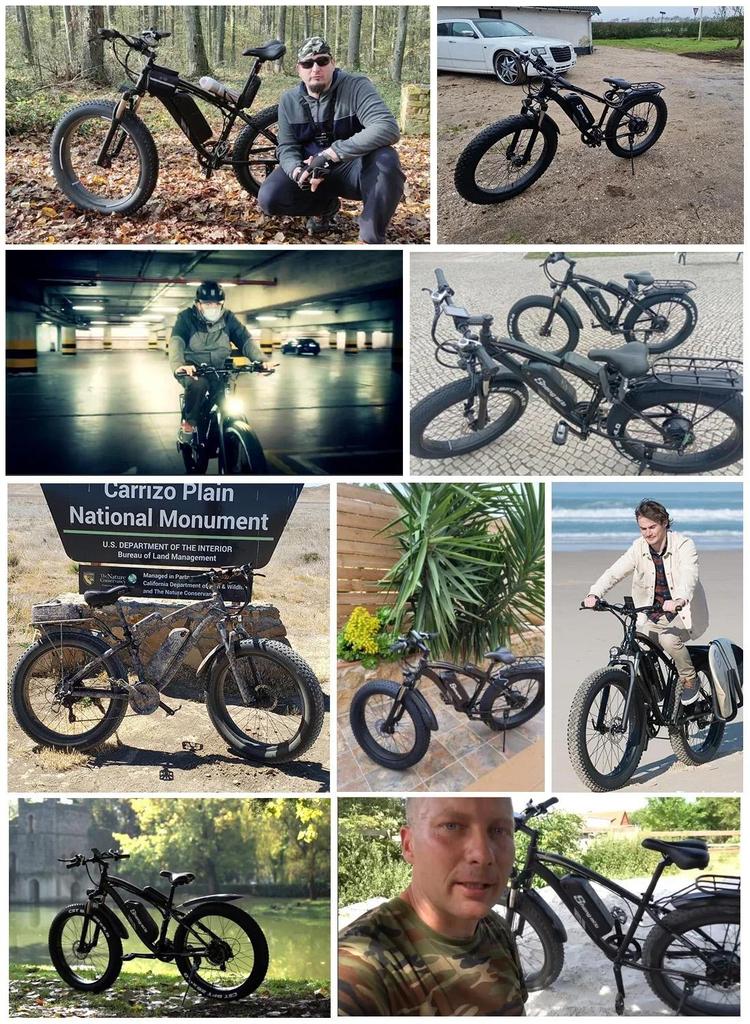Вездеходный покоритель: Сверхширокие шины 26×4,0 дюйма + система амортизации передней вилки, устойчивы как скала на гравии, грязи и неровностях дорог; Передние и задние крылья для бездорожья, не бойтесь брызг.