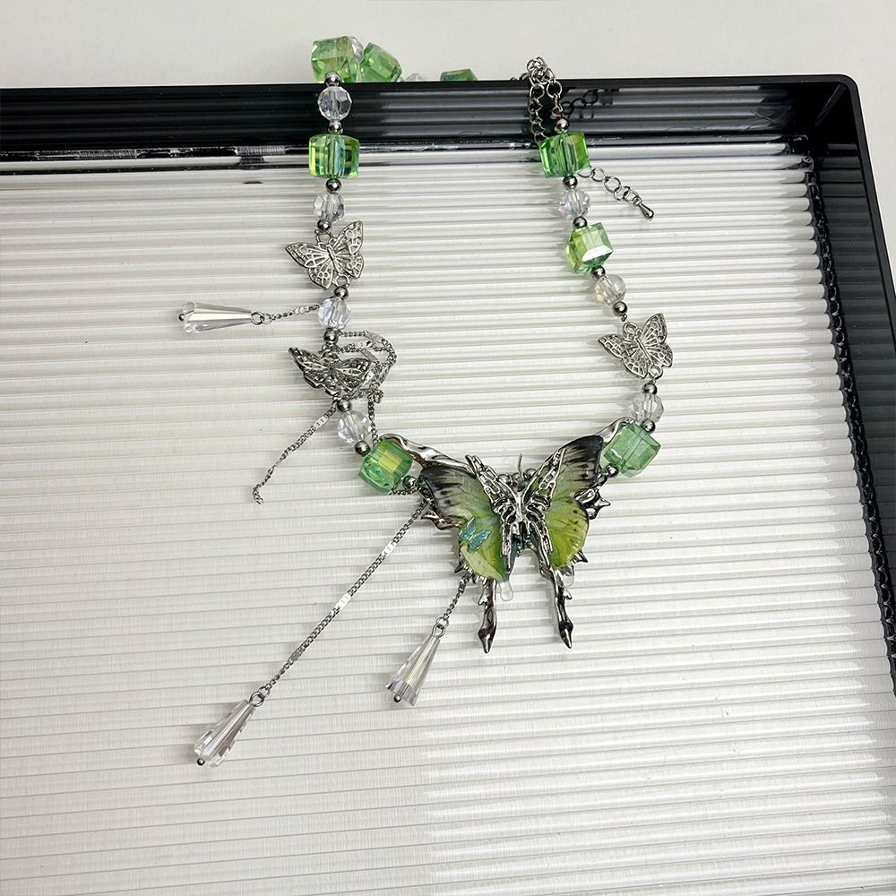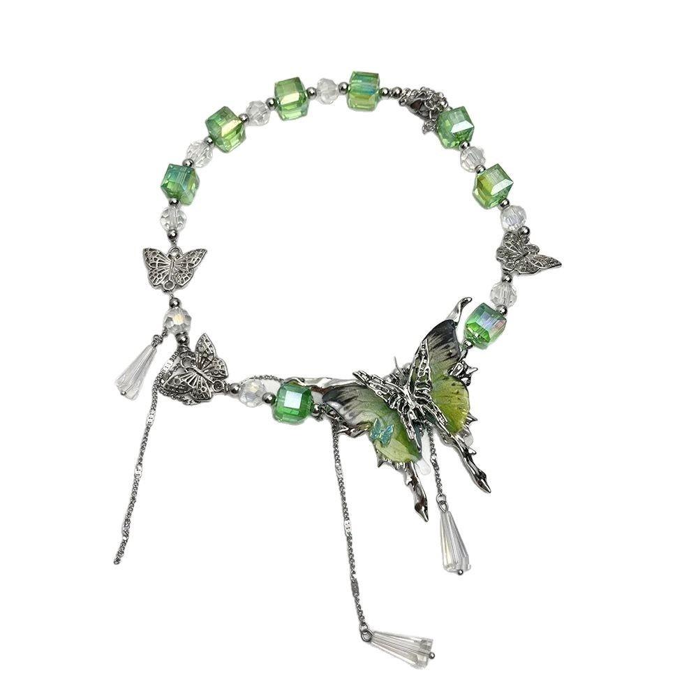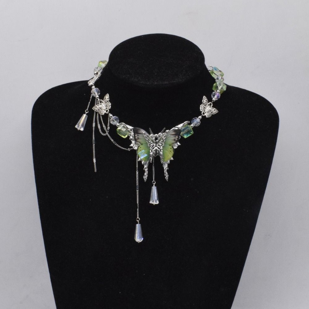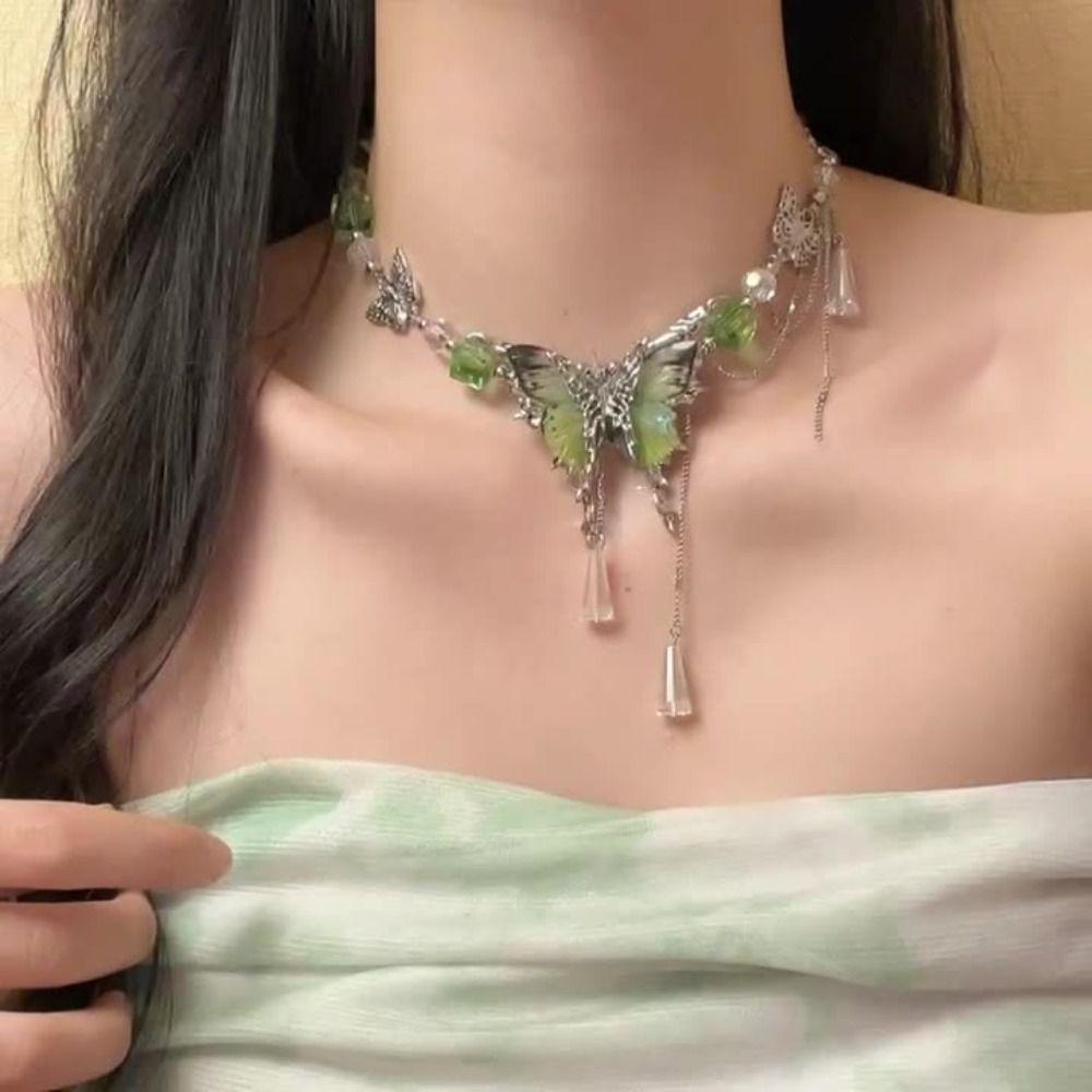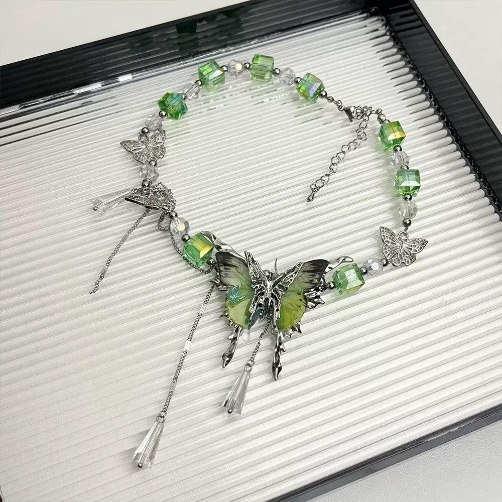 Регулируемое ожерелье-бабочка со стразами, милое женское колье-чокер, шикарное ожерелье с кисточками и кристаллами для вечеринки