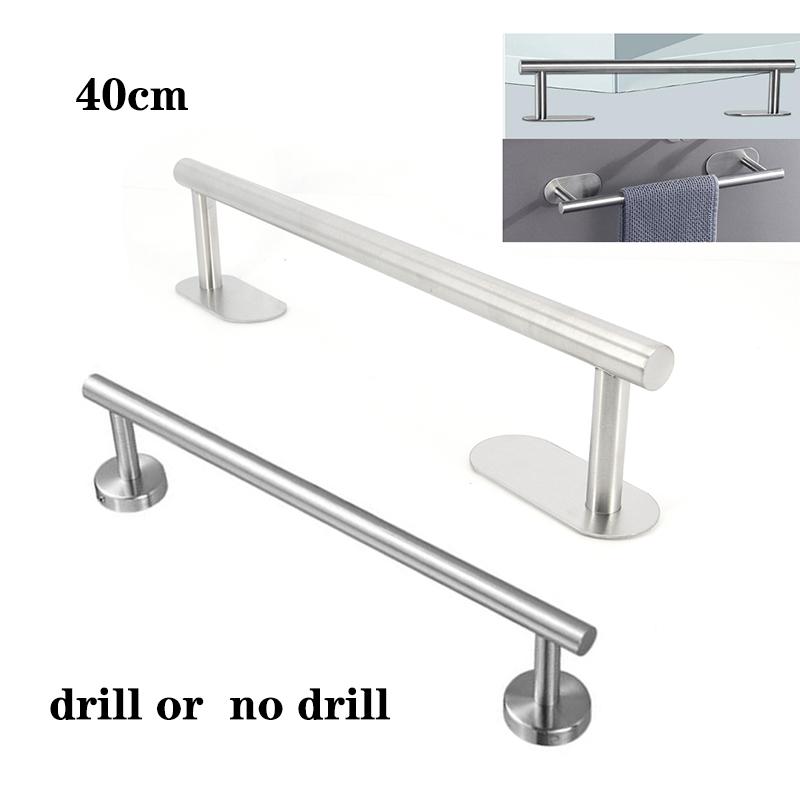 40 см серебряный держатель для полотенец из нержавеющей стали самоклеящаяся направляющая дрель без сверления перфоратор кухонная полка настенная фурнитура для ванной комнаты — купить товар онлайн с бесплатной доставкой по всему миру!