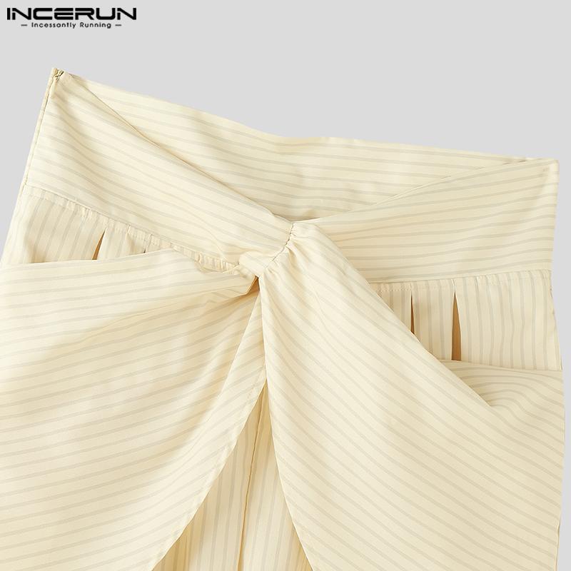 INCERUN Мужские повседневные длинные брюки с застежкой-молнией и оборками на талии