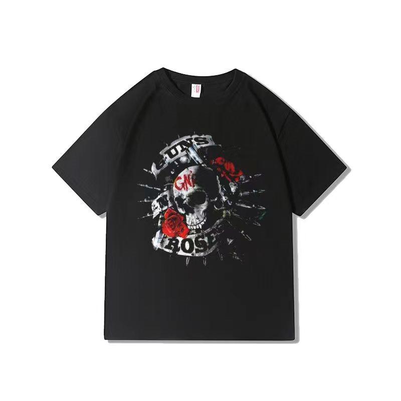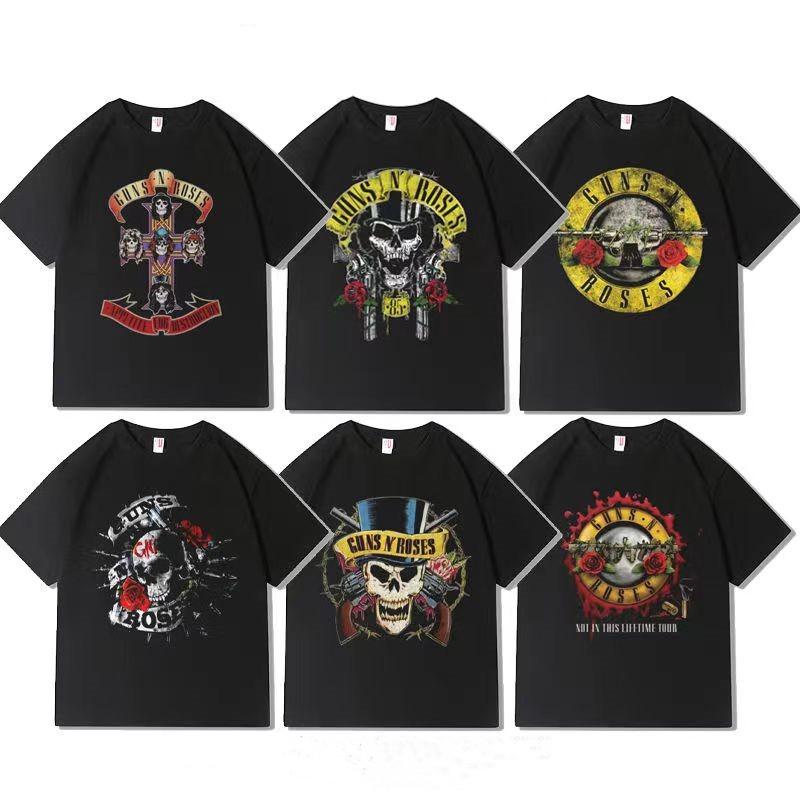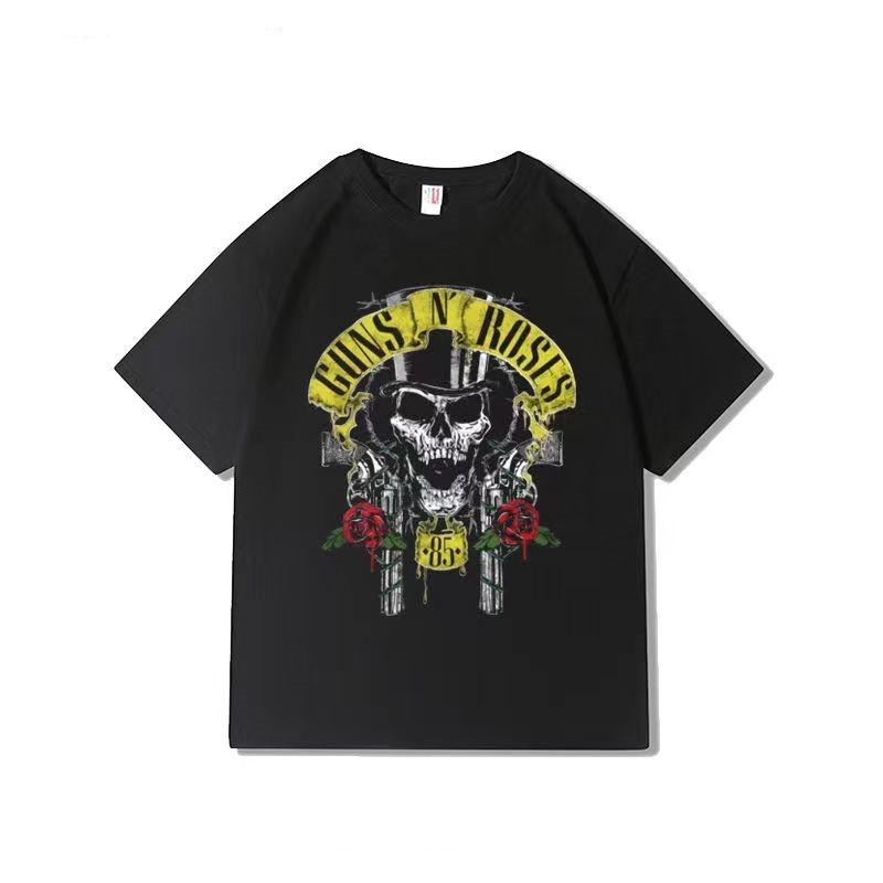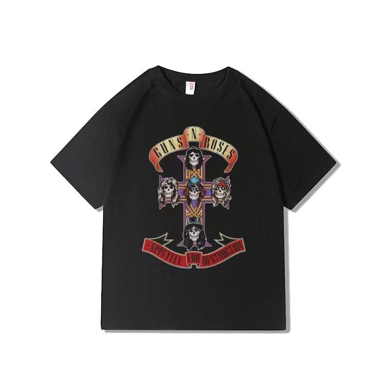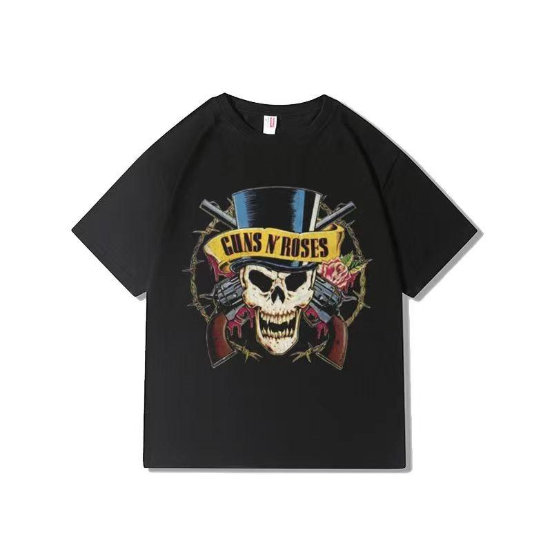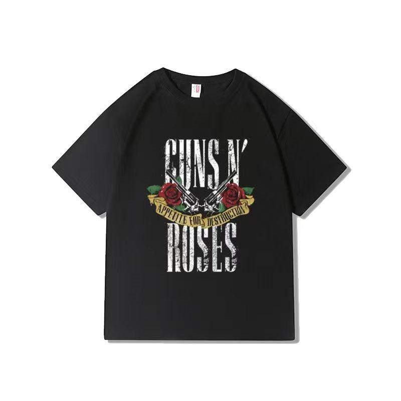 Футболка с коротким рукавом и круглым вырезом из чистого хлопка с принтом Guns'N'Roses Guns and Roses Guns Band, мужская футболка