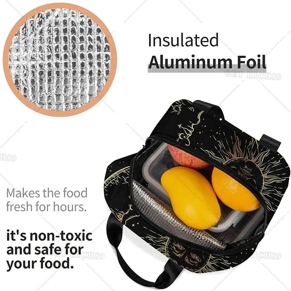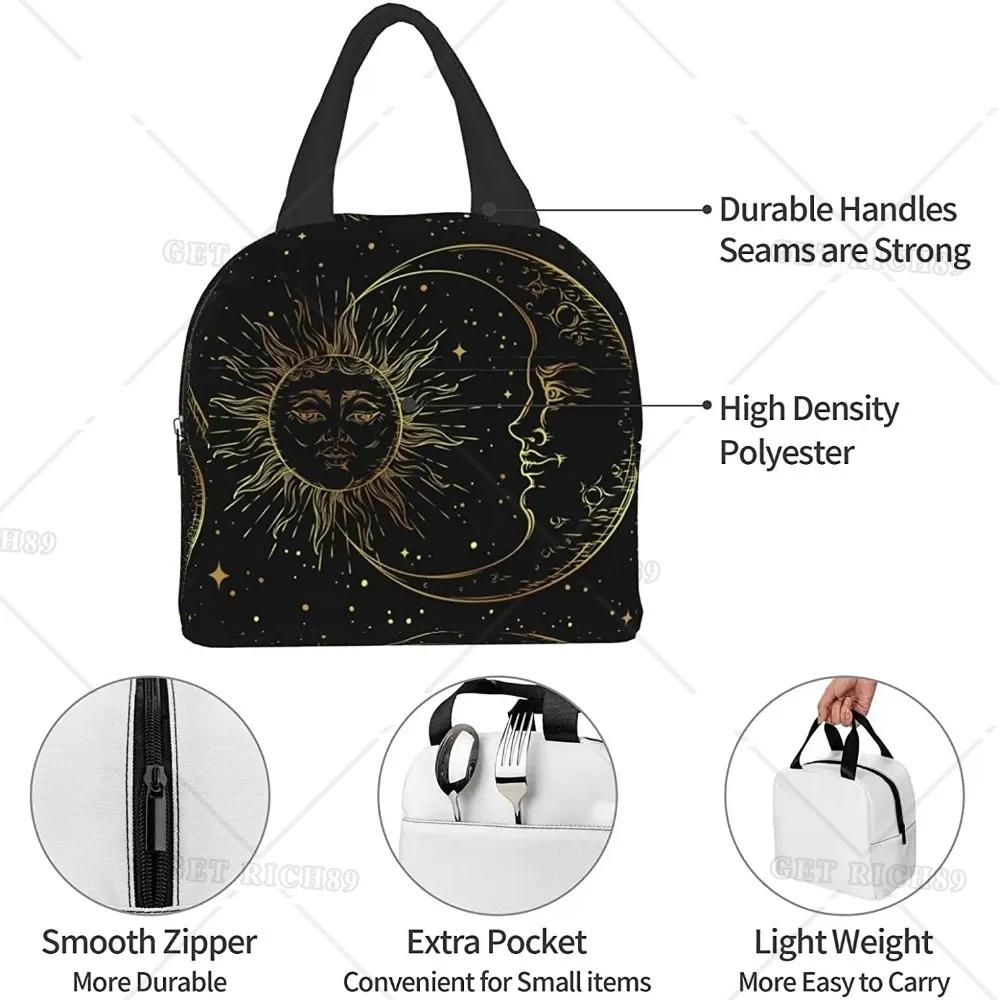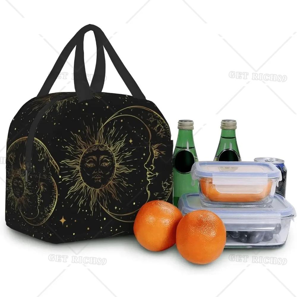 Сумка для ланча для женщин Sun Moon Black Mystical изолированный ланч-бокс-холодильник для взрослых детей мужчин для работы в офисе школы пикника многоразового использования