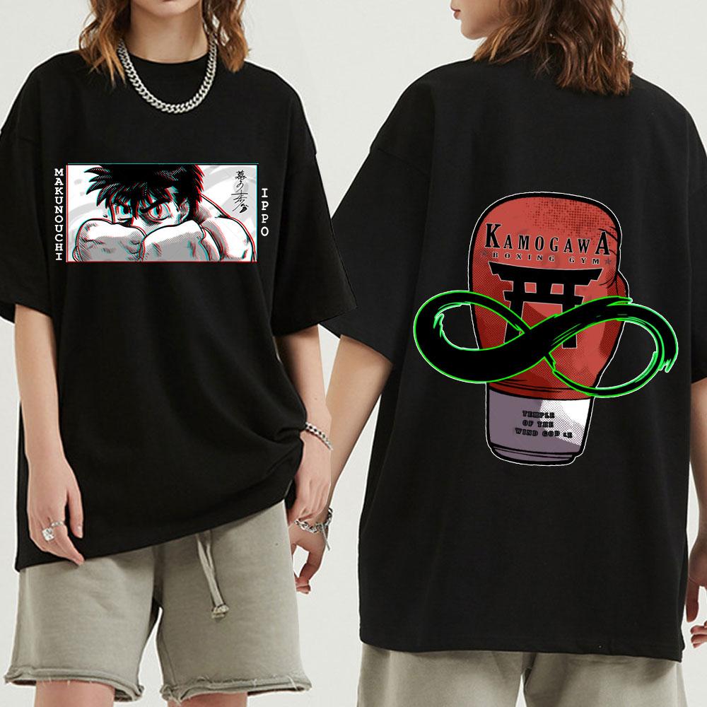 Горячая аниме-футболка Hajime No Ippo Kamogawa Boxing Gym Футболка Unisexga Makunouchi KGB Print Короткие рукава Футболки Oversize Streetwear Пары