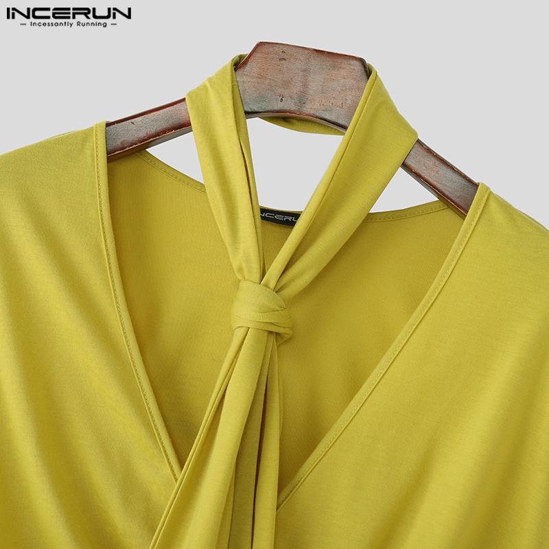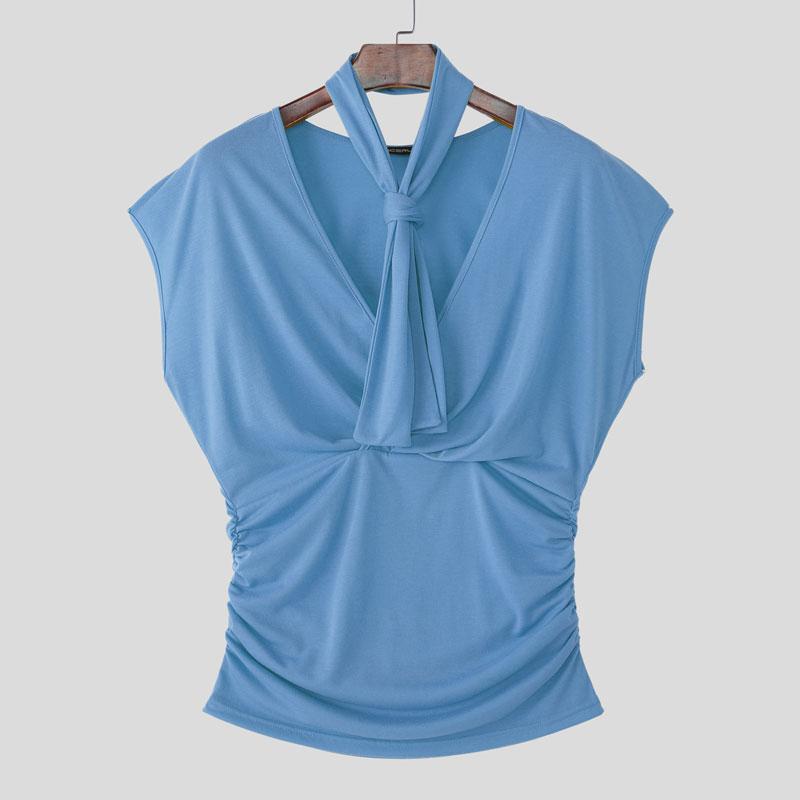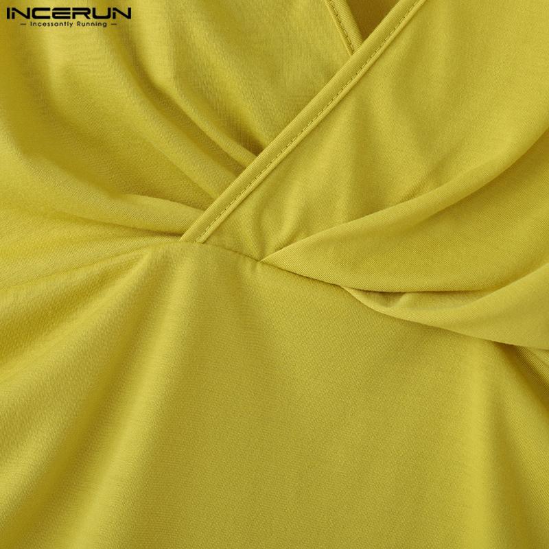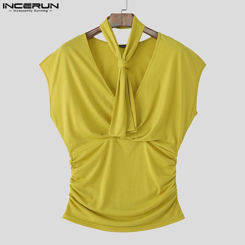 INCERUN Мужские топы-майки с V-образным вырезом без рукавов, однотонные, с завязками и узкой талией