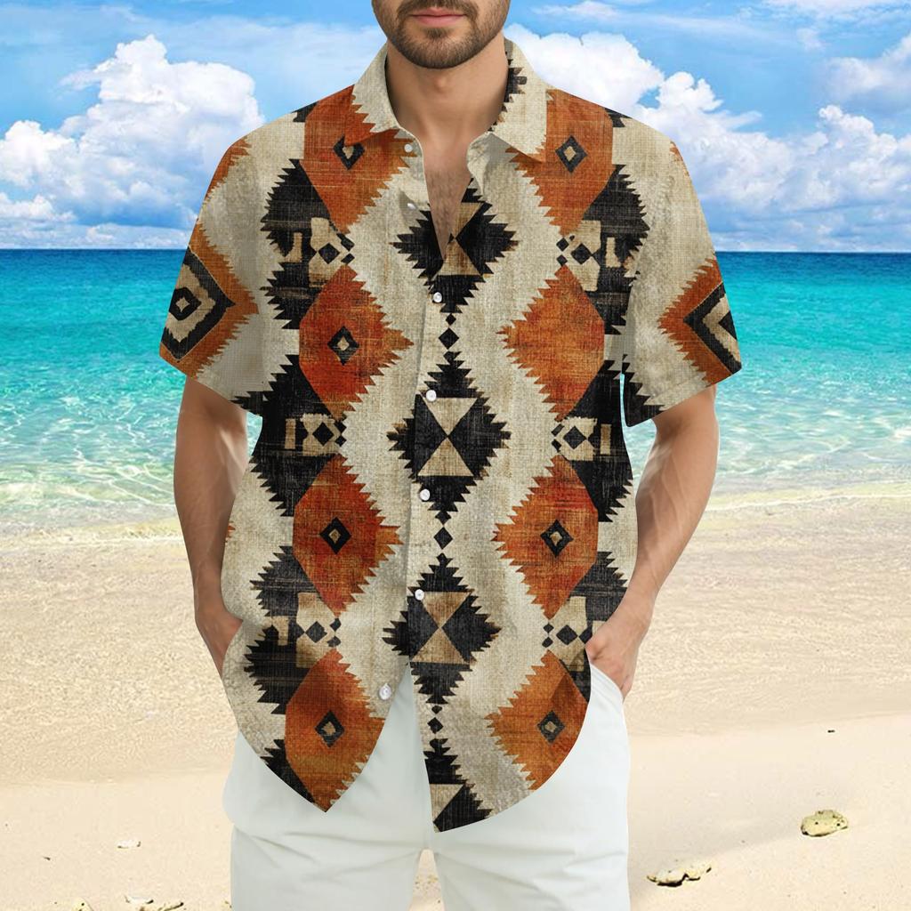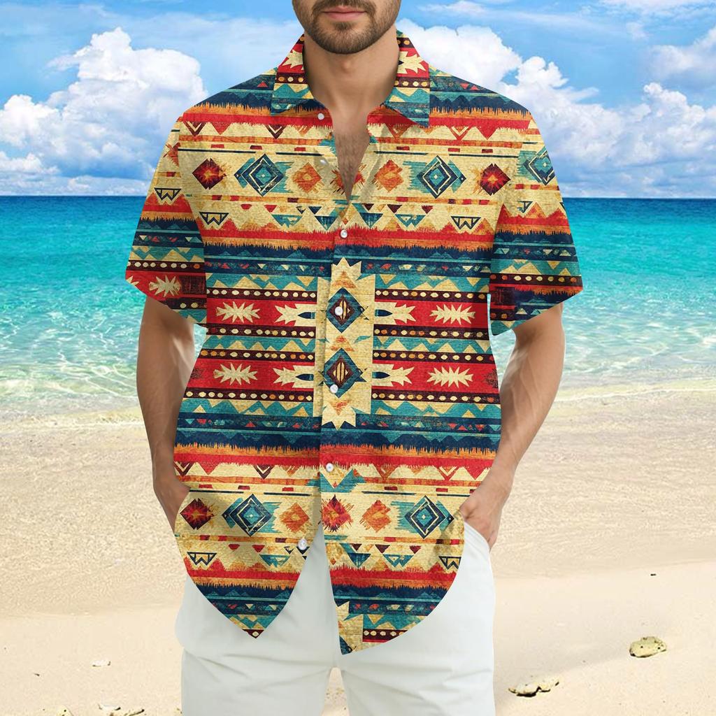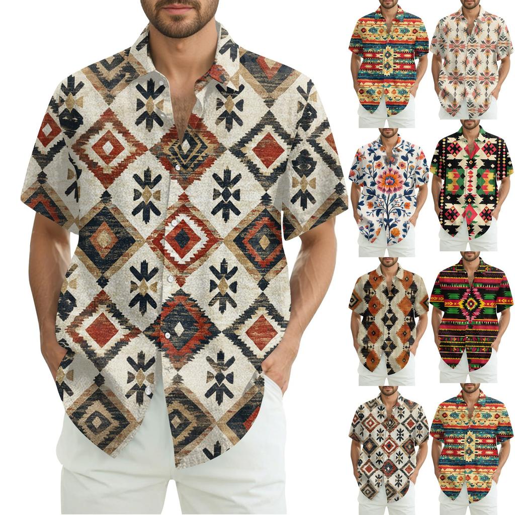 Мужская модная, повседневная и свободная рубашка в стиле бохо с короткими рукавами и принтом