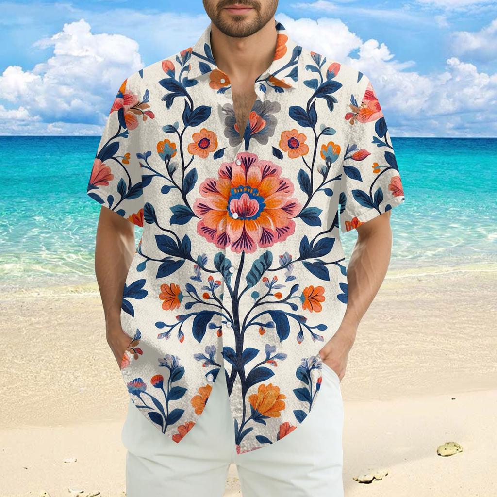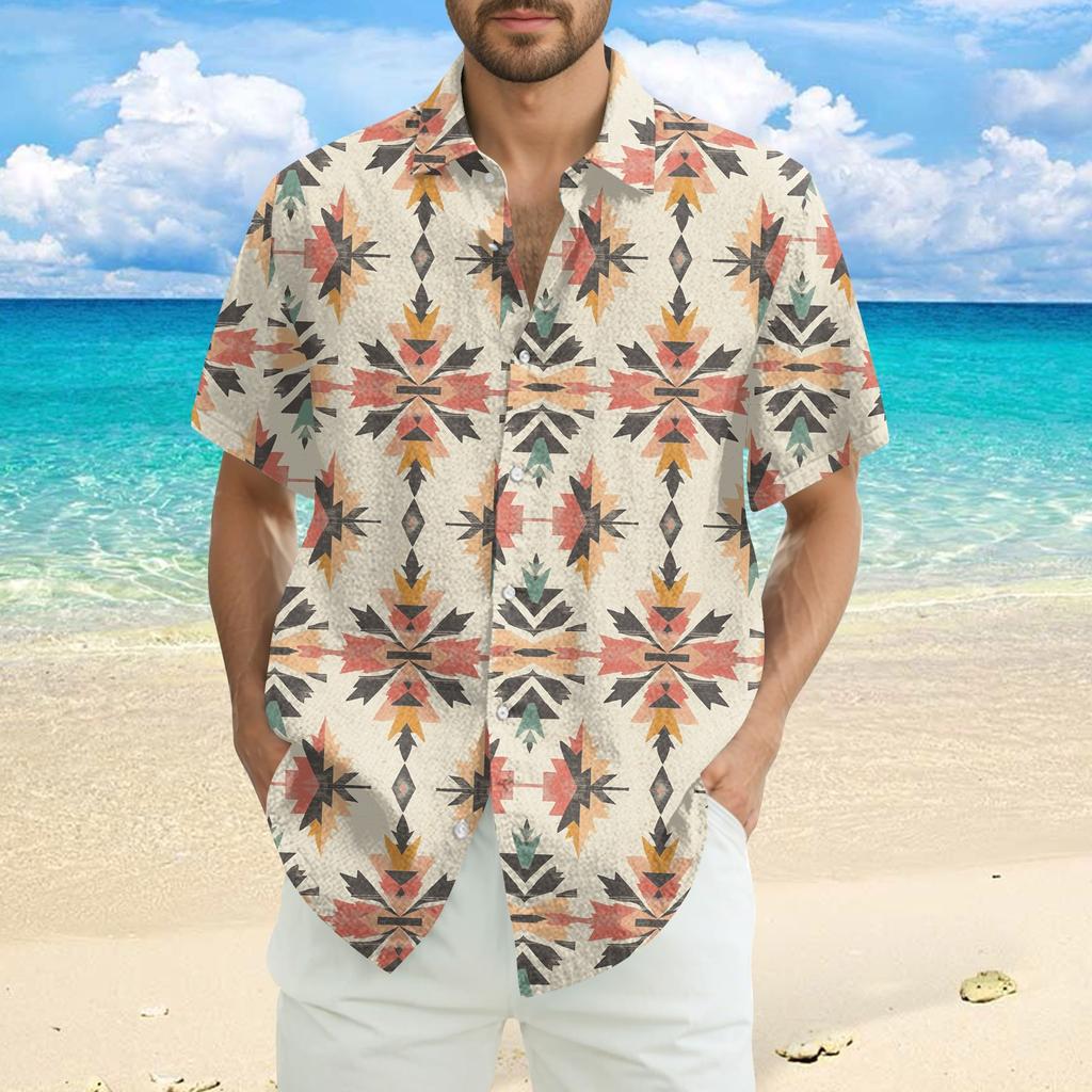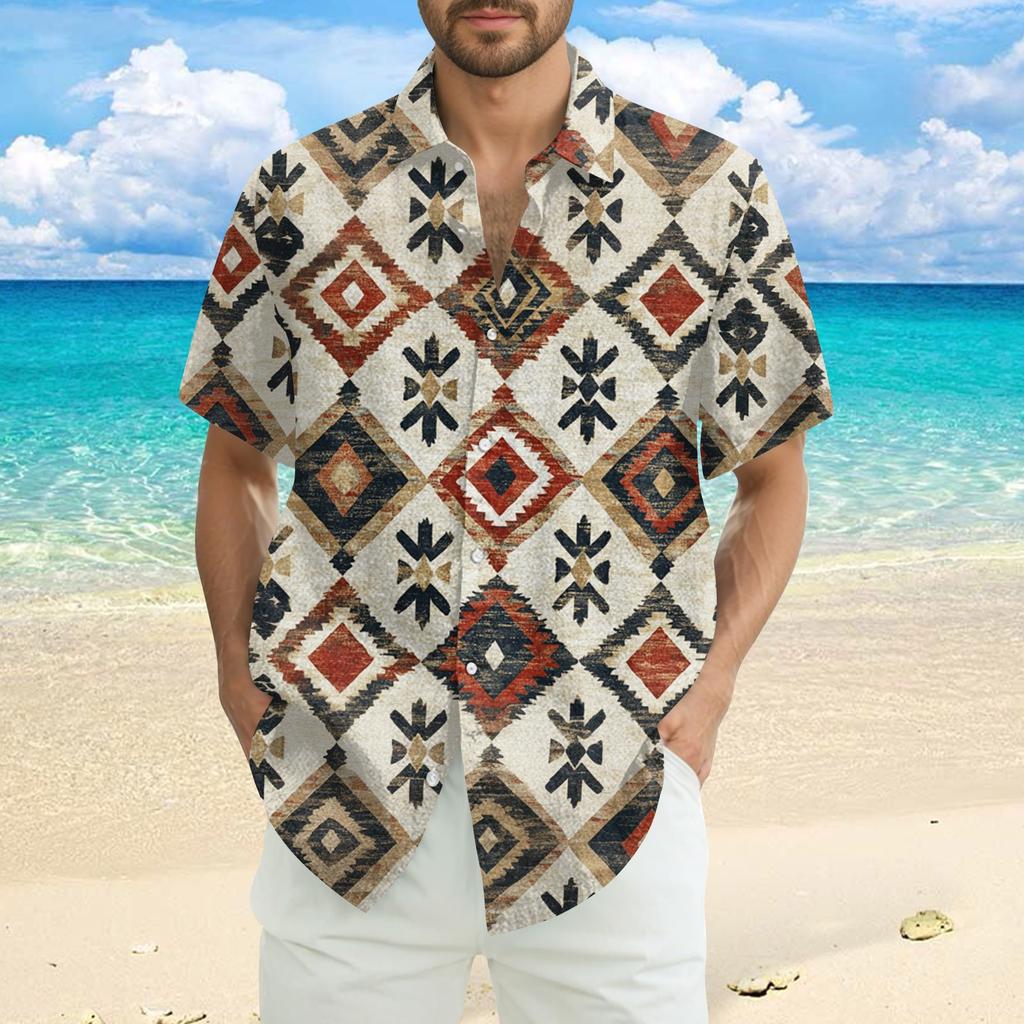Мужская модная, повседневная и свободная рубашка в стиле бохо с короткими рукавами и принтом