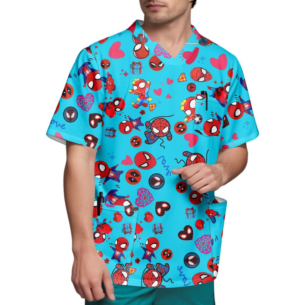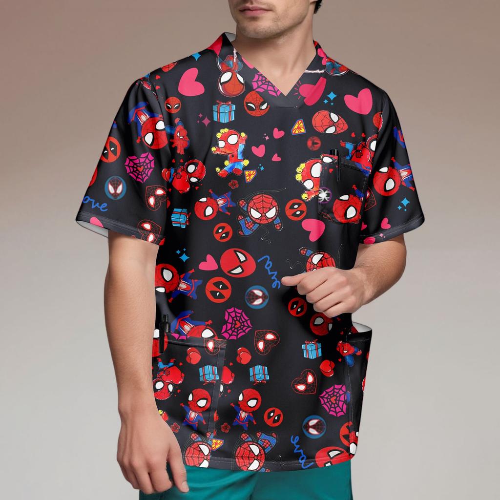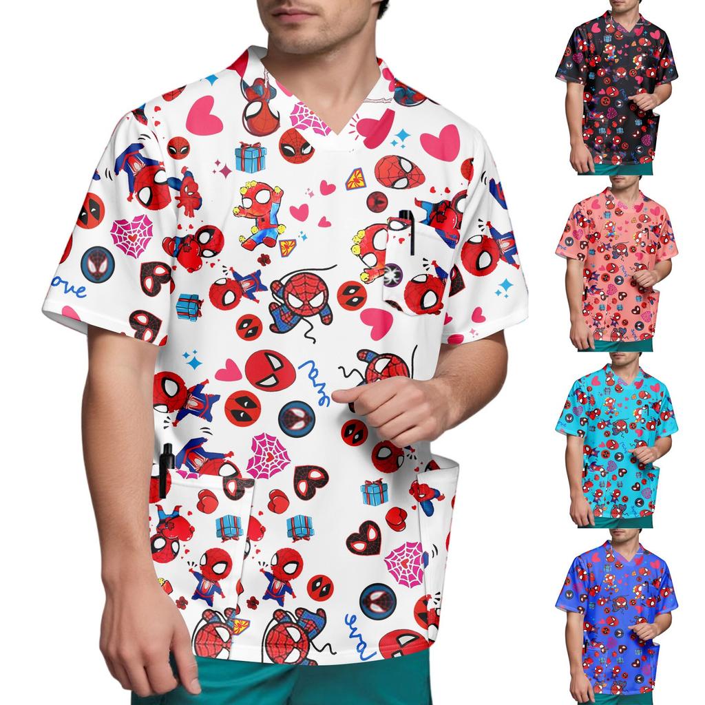 Мужской топ с коротким рукавом и V-образным вырезом с принтом нагрудного кармана