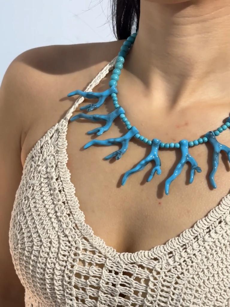 Летнее хит продаж, имитация цвета бирюзы, акриловое ожерелье с коралловым кулоном для женщин, ювелирные изделия, ожерелье для пляжного отдыха — купить товар онлайн с бесплатной доставкой по всему миру!