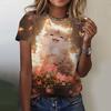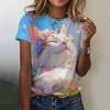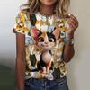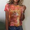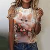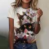 Женская футболка с короткими рукавами и принтом кота, повседневная, с 3D-узором для девочек на лето