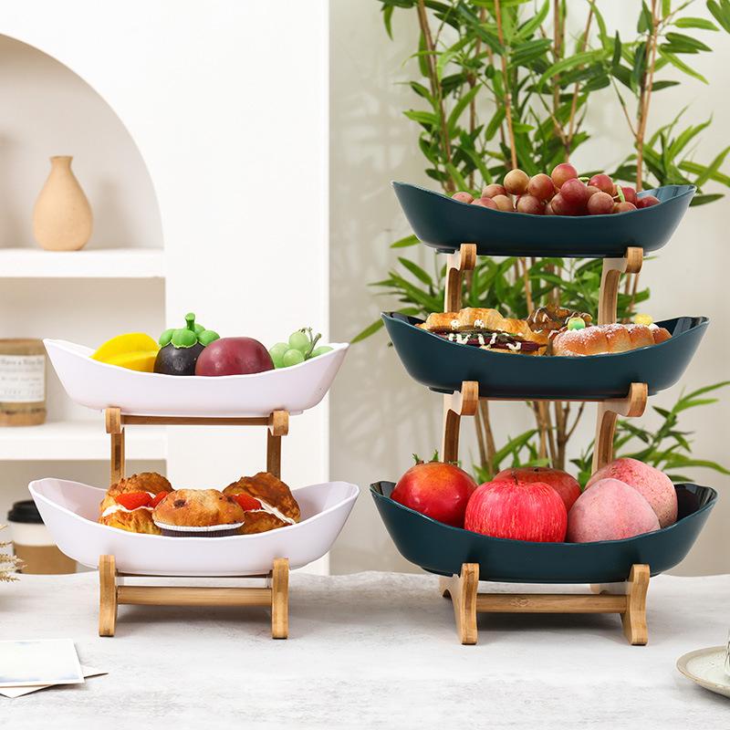 Бытовой Многослойный Поднос из Массива Дерева Гостиная Поднос для Фруктов Хранение Корзина для Фруктов Поднос для Закусок Подставка для Десертов