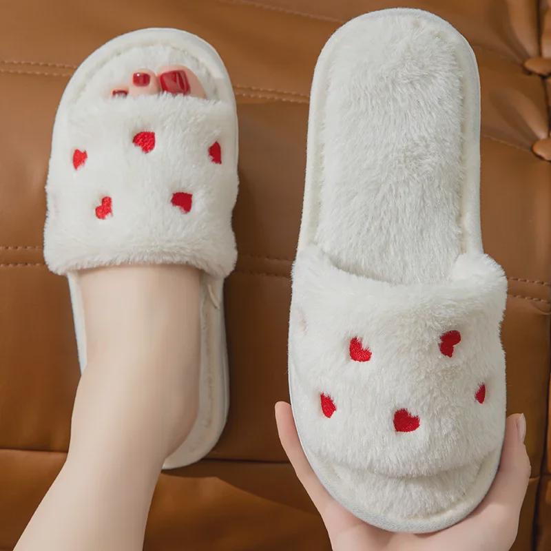 Уютные плюшевые тапочки в форме сердца: Нескользящая домашняя обувь для пар на осень и зиму