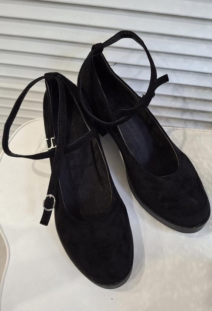 Это стильные туфли в духе Мэри Джейн с современным акцентом! Они сочетают в себе классический женственный дизайн с трендовыми элементами. 🔸На выбор размеры: 36-42. На мне 39 (заказывала в подарок), по стельке 25 см. 🔸Модель выполнена из черной замши ( ее имитации) и имеет округлый закрытый носок, что придает им винтажный, но очень актуальный вид. 🔸У них массивный, устойчивый блочный каблук и заметная платформа в передней части. Такое сочетание не только визуально удлиняет ноги, но и делает туфли комфортными для своей высоты за счет уменьшения угла подъема стопы. 🔸Тонкий ремешок на подъеме с металлической пряжкой — это ключевой элемент стиля "Мэри Джейн". Он обеспечивает надежную фиксацию и добавляет обуви изящества. 🔸Эти туфли отлично подойдут для создания образов в стиле casual, гранж или преппи. Они прекрасно смотрятся с колготками, носками, юбками-мини, платьями-миди и укороченными брюками. Рекомендую 👍 Ставлю ⭐ ⭐ ⭐ ⭐ ⭐ Спасибо продавцу ❤️ и Joom ❤️