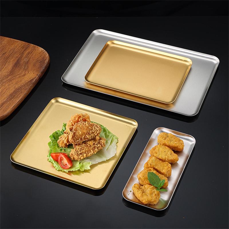 Сервировочная тарелка из серебряной и золотой нержавеющей стали, ресторан, барбекю, шампуры, поднос для суши, большой неглубокий поднос, тарелки для хранения продуктов на кухне