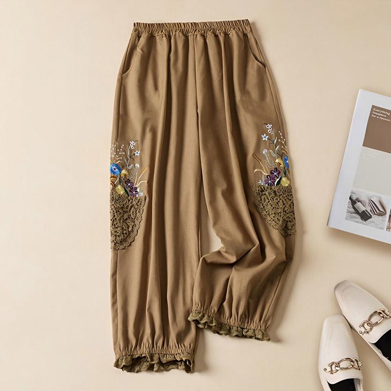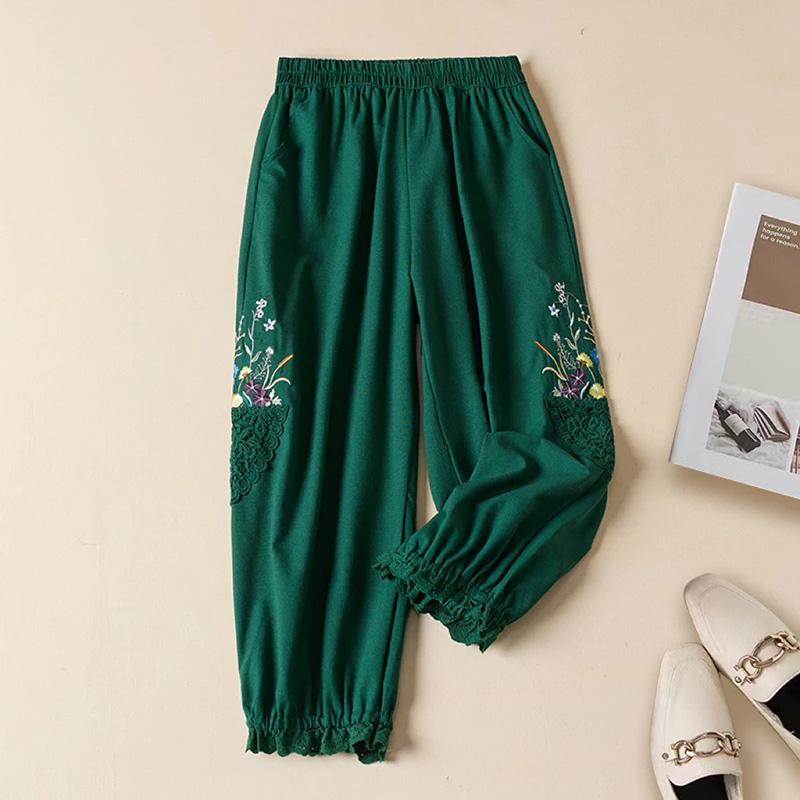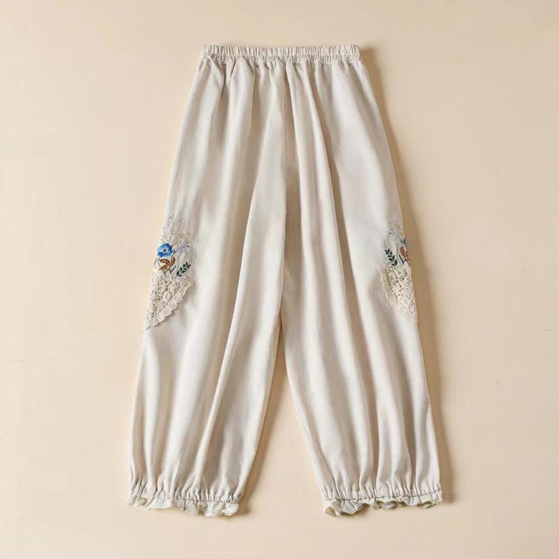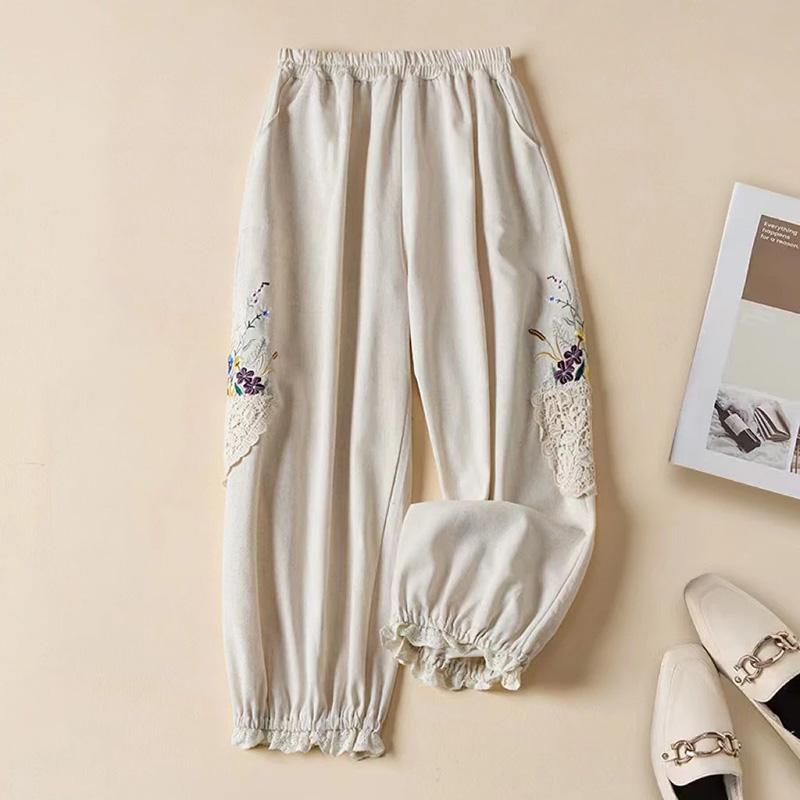 Хлопковые брюки летние женские большие размеры свободные пижамные брюки универсальные повседневные льняные брюки с высокой талией широкие