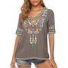Летняя футболка с цветочным этническим 3D-принтом и V-образным вырезом, женские ретро-топы, уличная одежда в стиле бохо, футболки свободного покроя в стиле Харадзюку, женская одежда