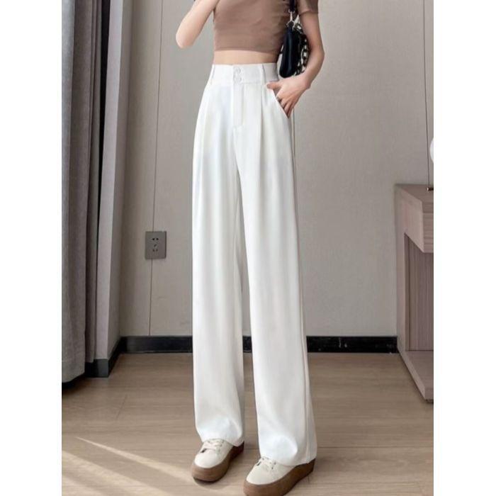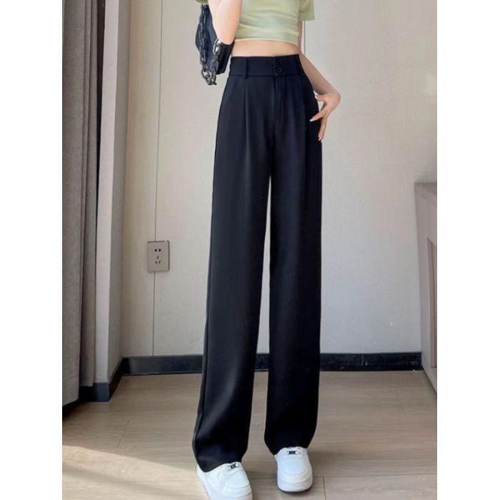 Костюм из ледяного шелка, широкие брюки для женщин, летние, тонкие корейские брюки из шифона с высокой талией, узкие прямые брюки для повседневного костюма