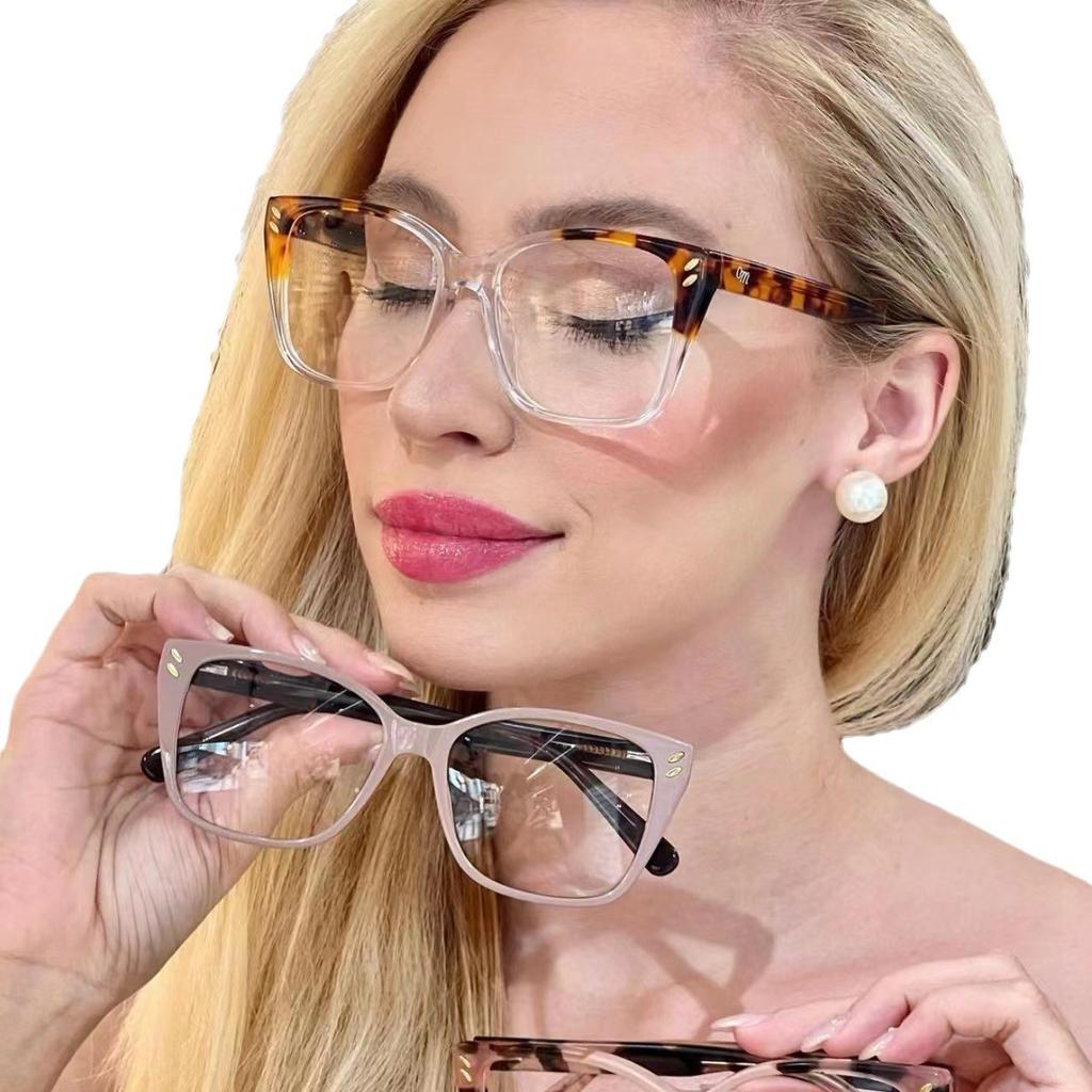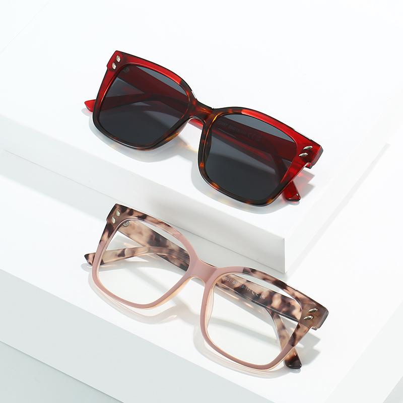 Солнцезащитные очки женские квадратные большие плоские очки, заклепки модные уличные оправы для очков