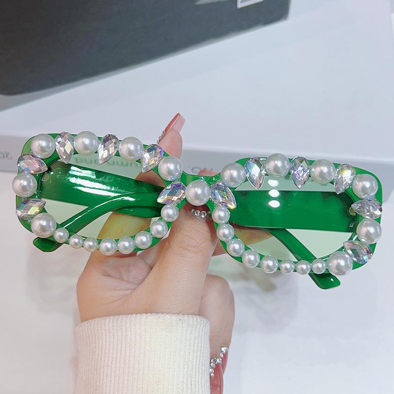 Солнцезащитные очки Pearl Women, Temperament Personality Diamond-Impact Square Glasses, Hip Hop Sunglasses