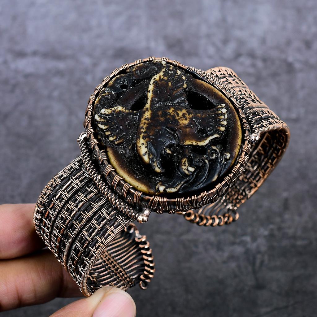 Камея Орел Ручная работа Медная проволока Оплетка Манжета Браслет Регулируемый O9h52