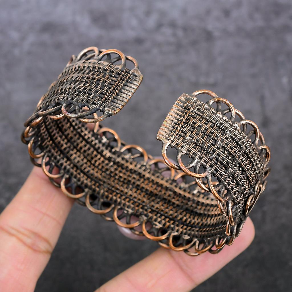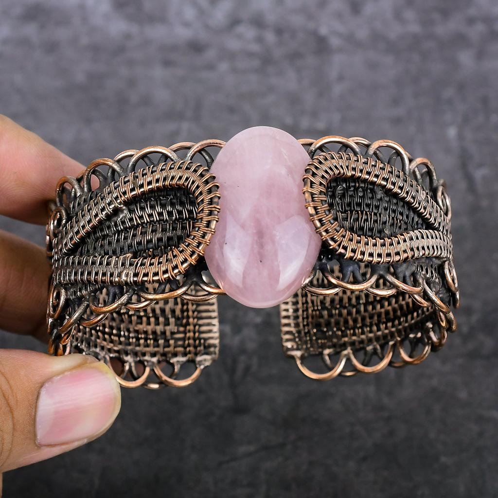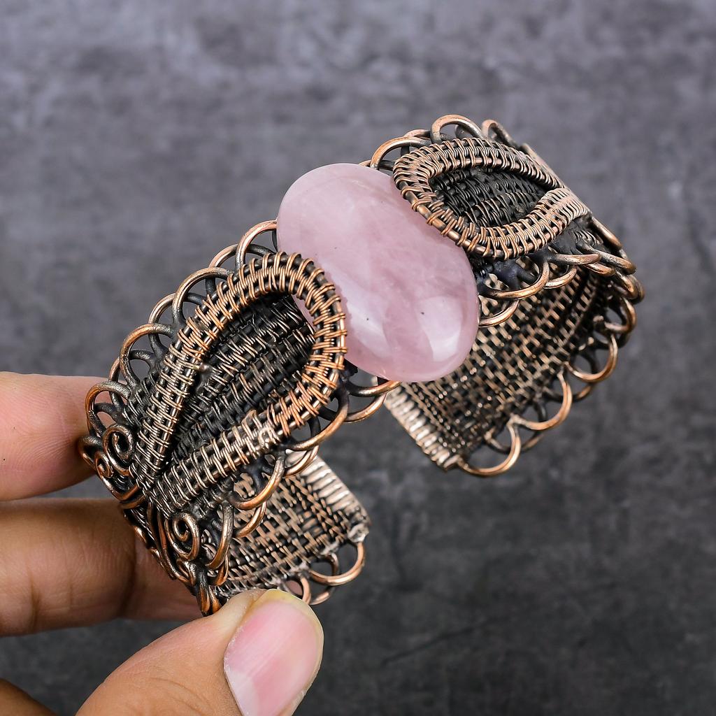 Браслет-манжета из розового кварца, ручная работа, обмотка медной проволокой, регулируемый u9Y39