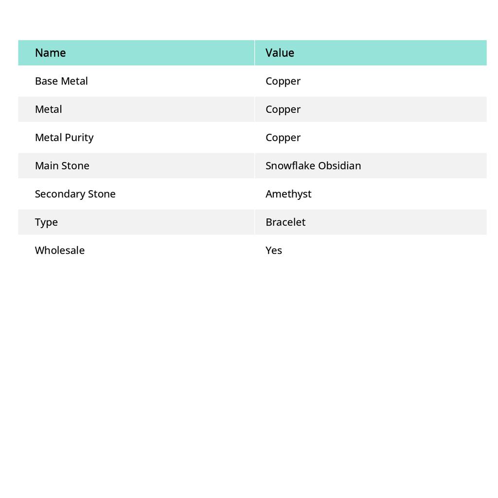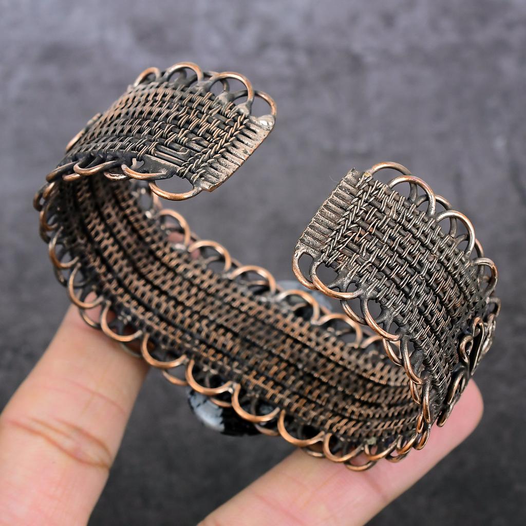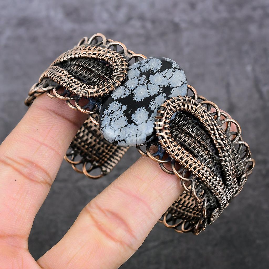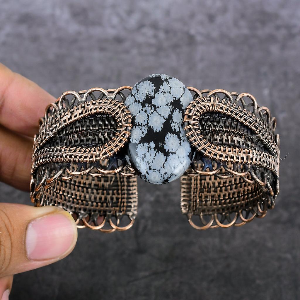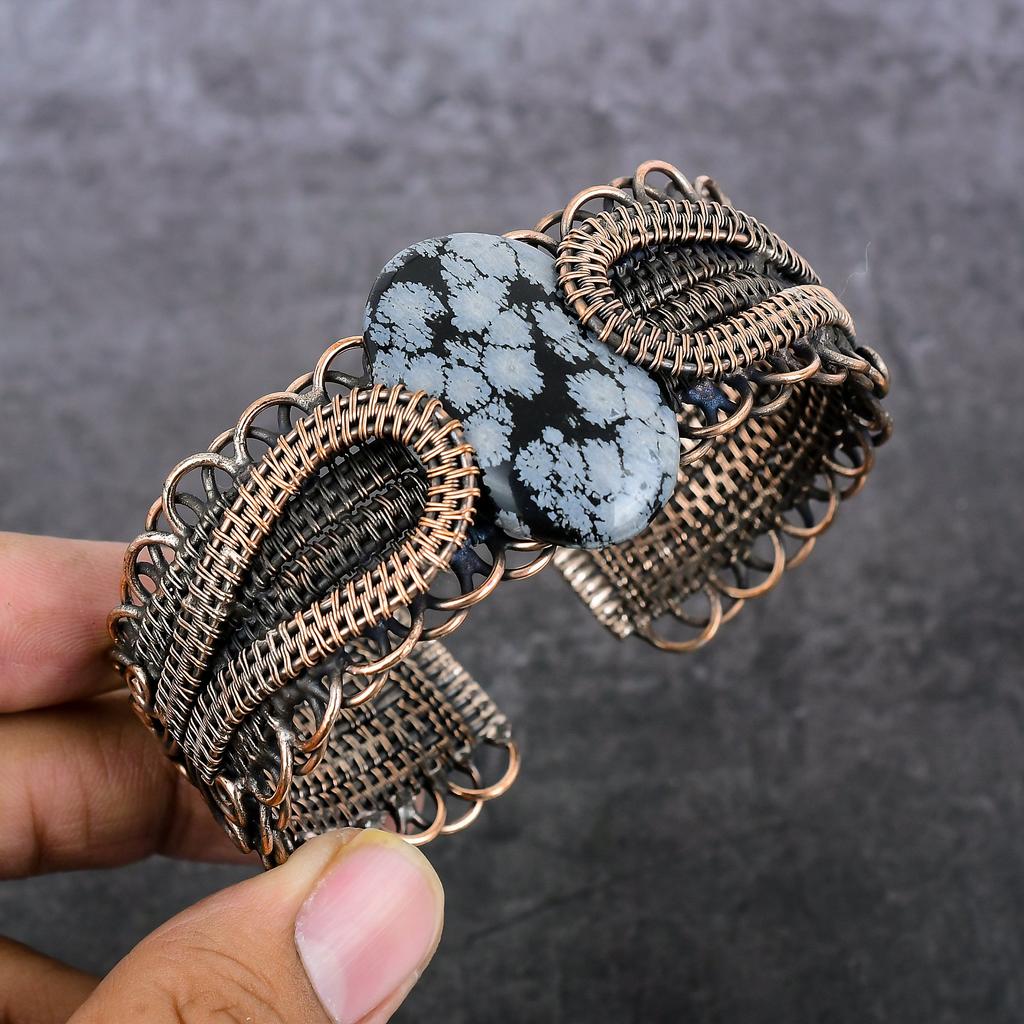 Снежный обсидиан Ручная работа Медная проволока Оплетка Манжета Браслет Регулируемый P7S52
