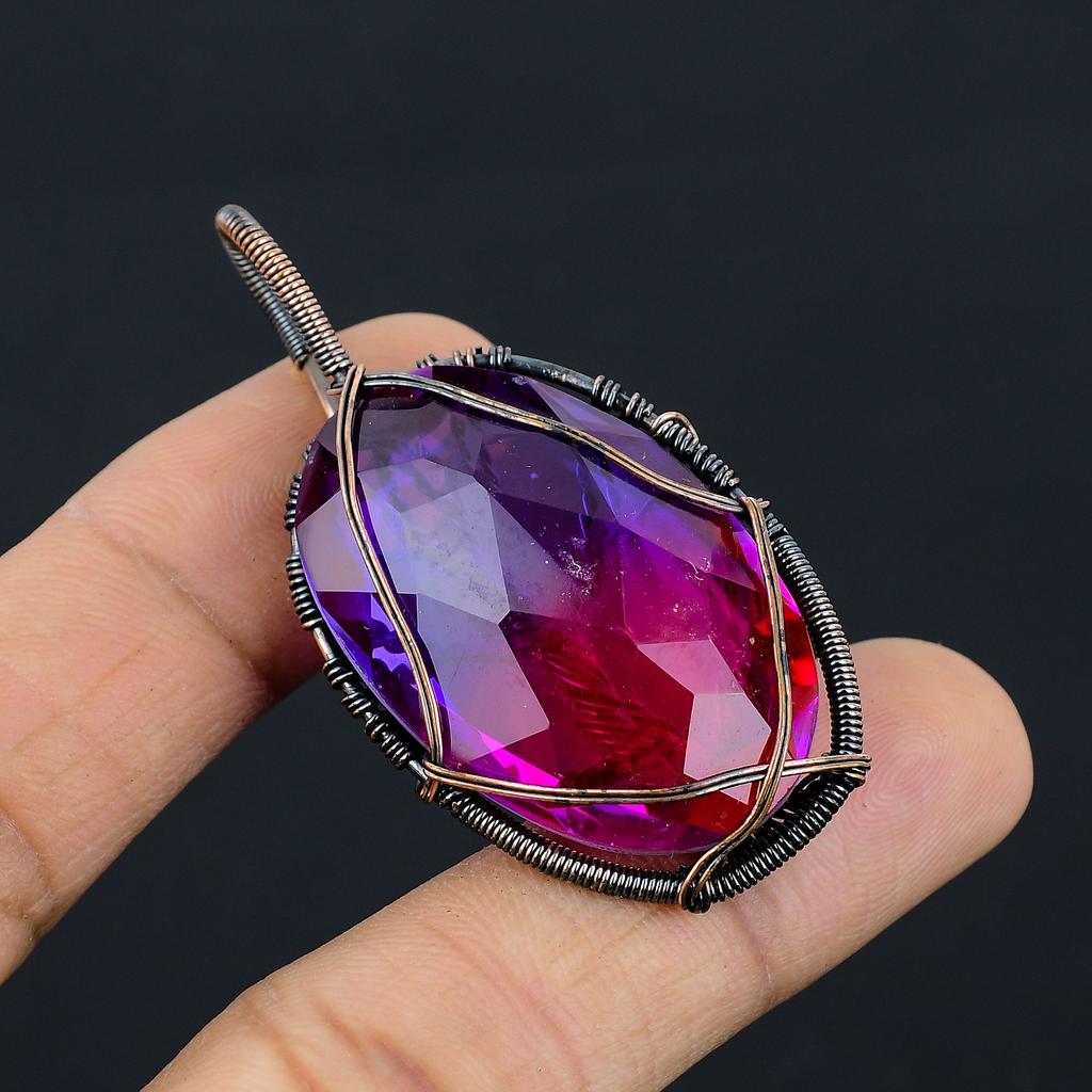 Турмалин двухцветный, ручная работа, оплетка из медной проволоки, ювелирная подвеска 2,3" s8t55