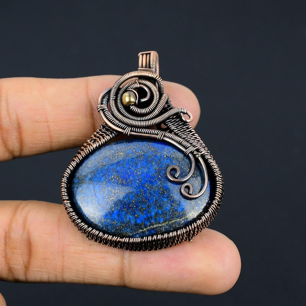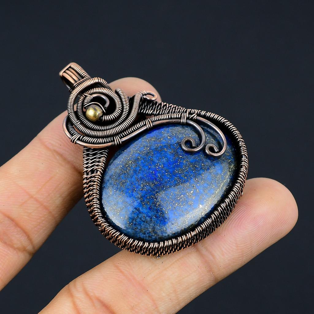 Лазурит Ручная работа Медная проволока Оплетка Подарок Ювелирное изделие Подвеска 2.24" O8H53