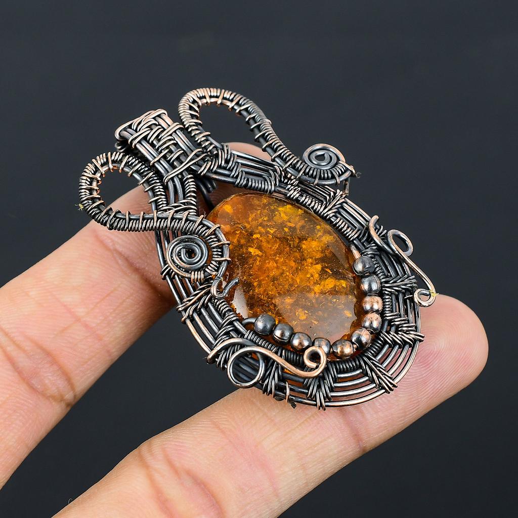 Балтийский янтарь Ручная работа Медная проволока Оплетка Подвеска 2.36" s2I83