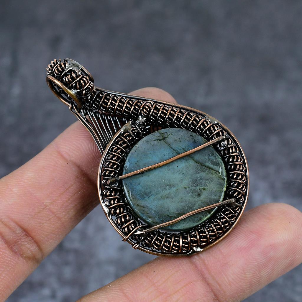 Лабрадорит Ручная работа Медная проволока Обертка Ювелирный кулон 2,36" i1R24