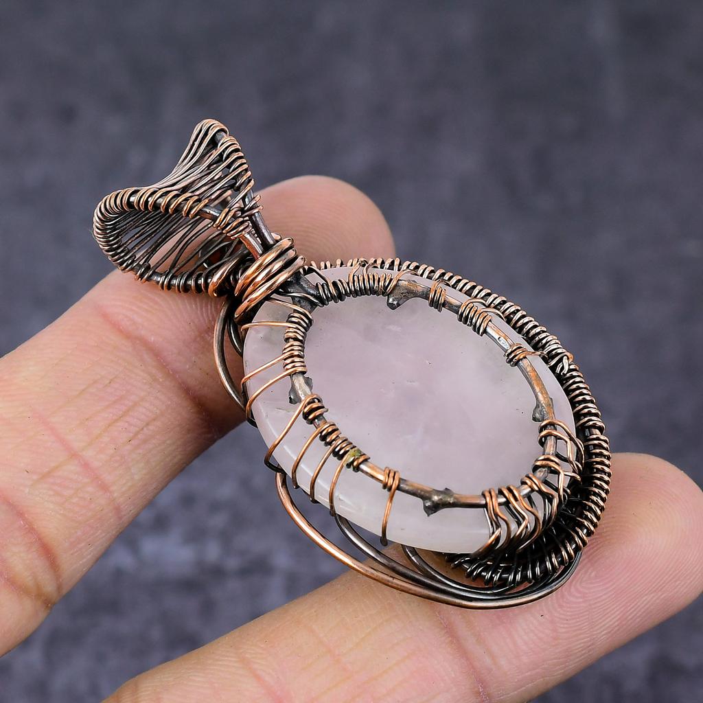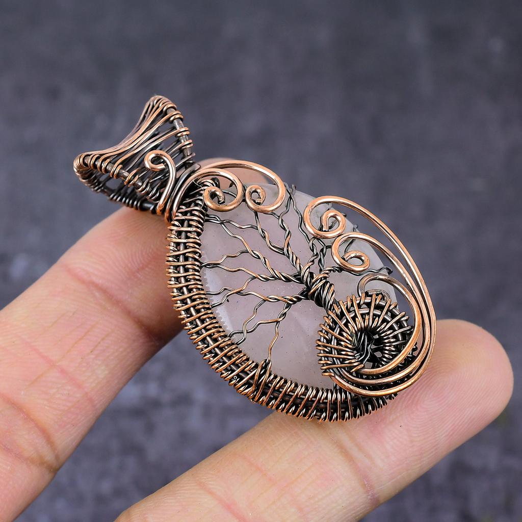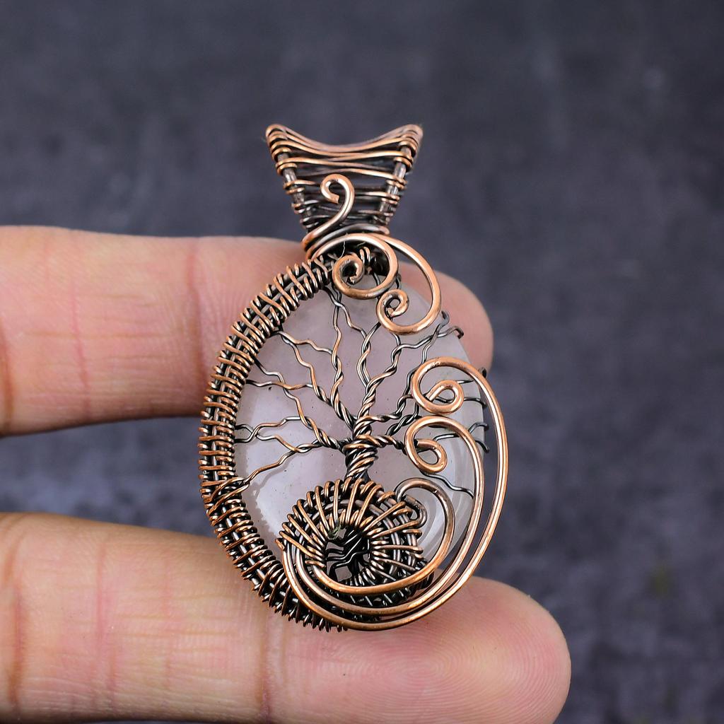 Кулон Дерево Жизни из Розового Кварца Ручной Работы с Медной Проволочной Оплеткой 2,17" m4D83