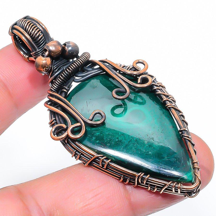 Малахит Ручной Работы Медная Проволока Оплетка Ювелирная Подвеска 2.52" q2C66