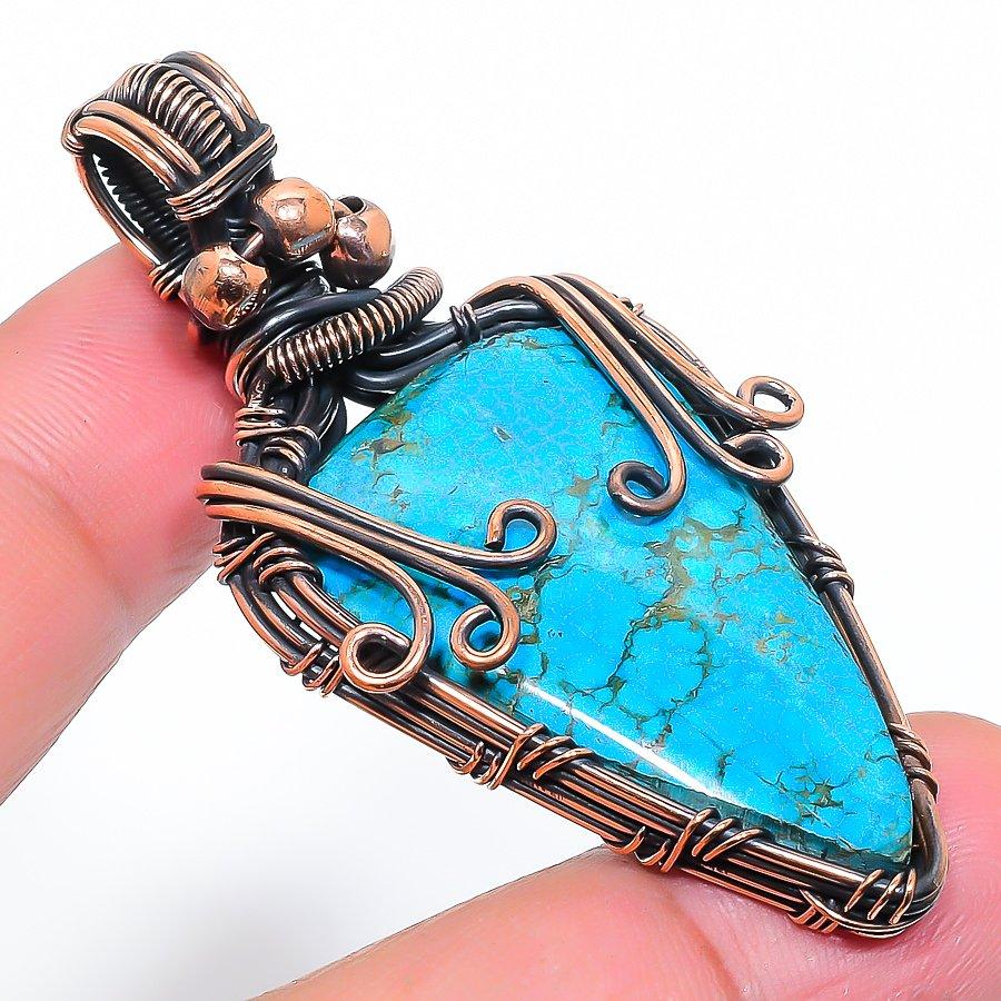 Тибетская бирюза Ручная работа Медная проволока Обертка Ювелирный кулон 2,36 D9Q24 — купить товар онлайн с бесплатной доставкой по всему миру!