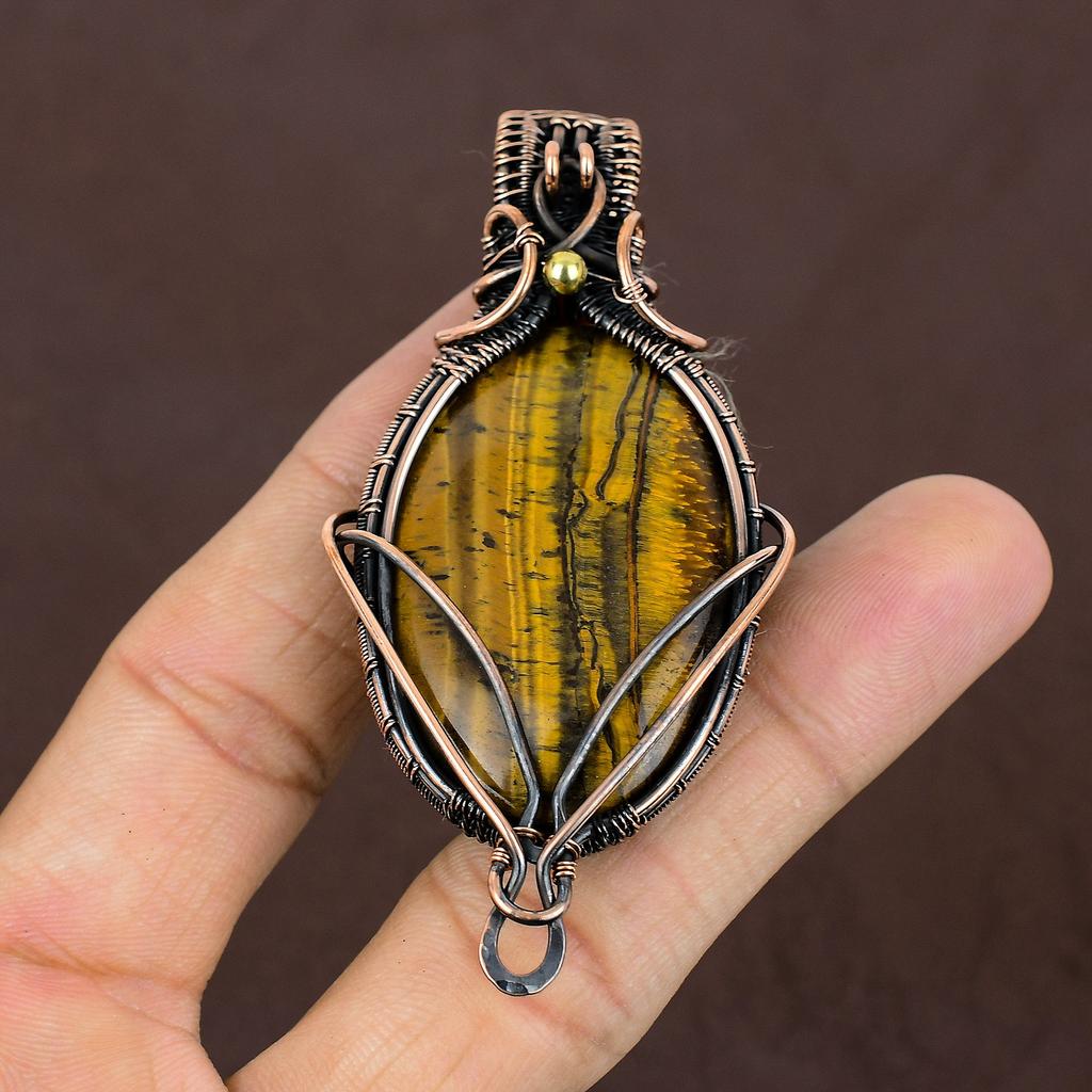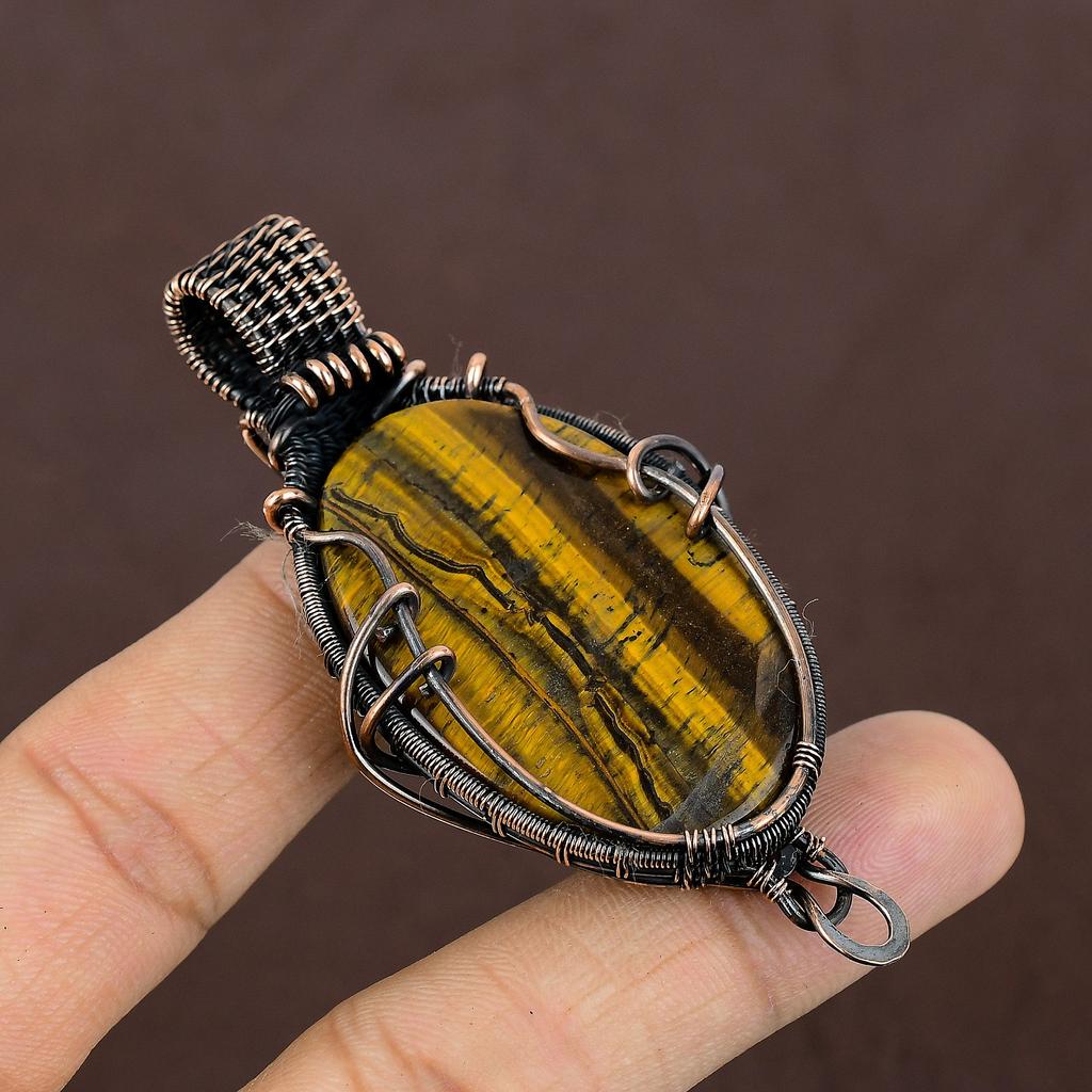 Кулон из тигрового глаза, ручная работа, обмотка медной проволокой, подарок, ювелирное украшение, 2,15 дюйма j8o14