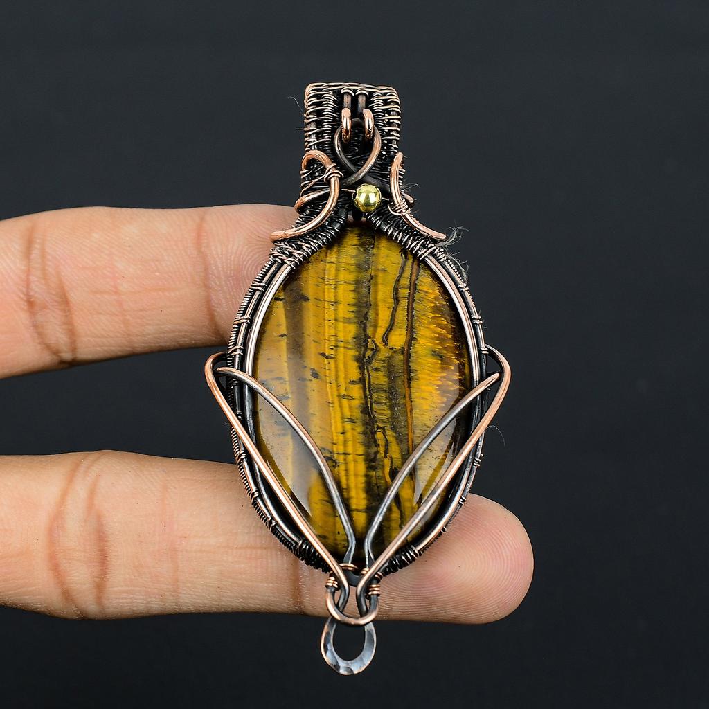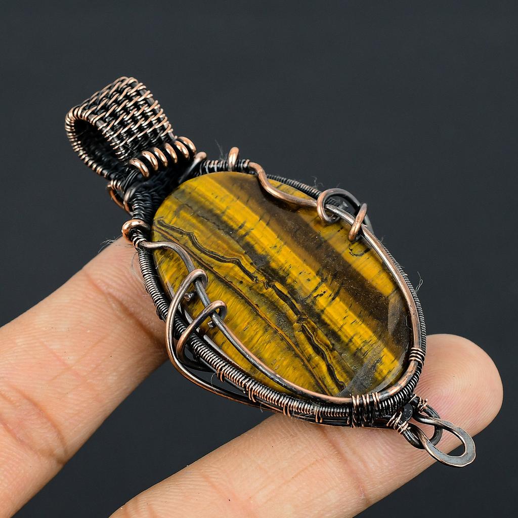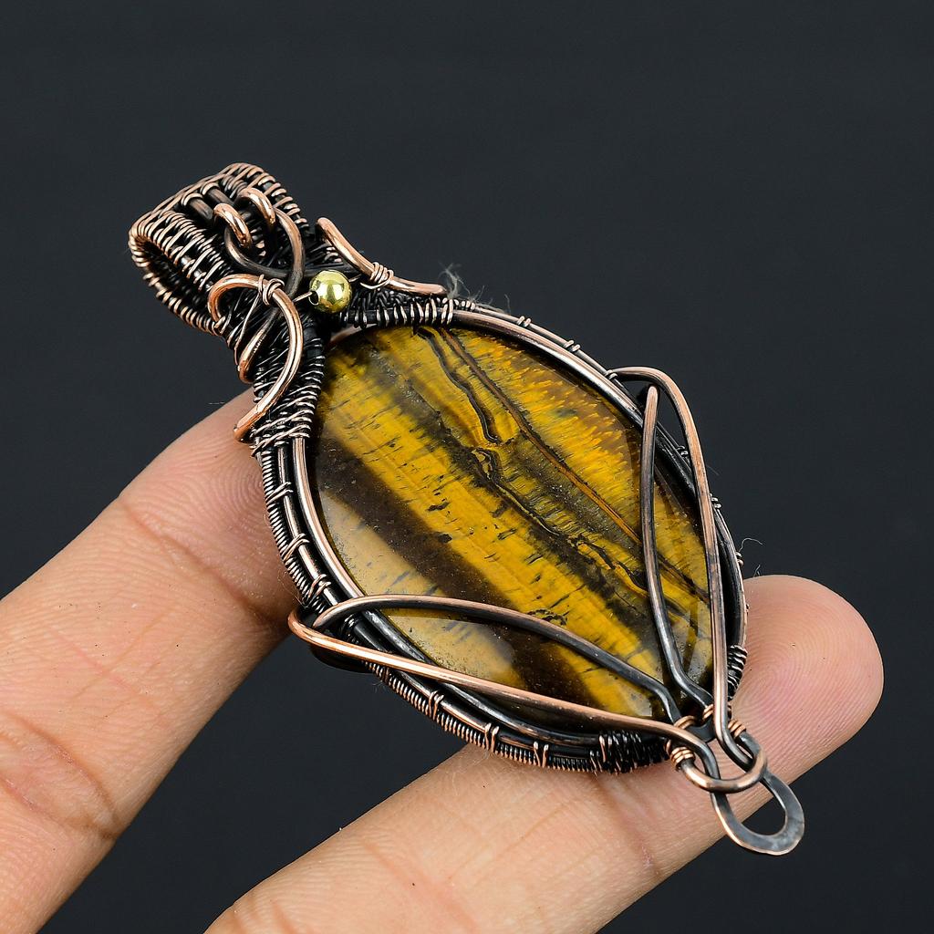 Кулон из тигрового глаза, ручная работа, обмотка медной проволокой, подарок, ювелирное изделие, 2,15" g8M60