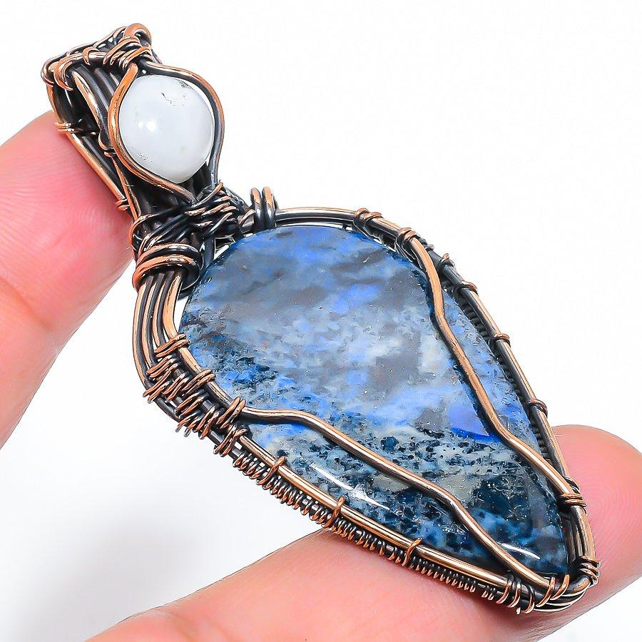 Содалит Ручная работа Медная проволока Обертка Ювелирная подвеска 2.80" M0z89