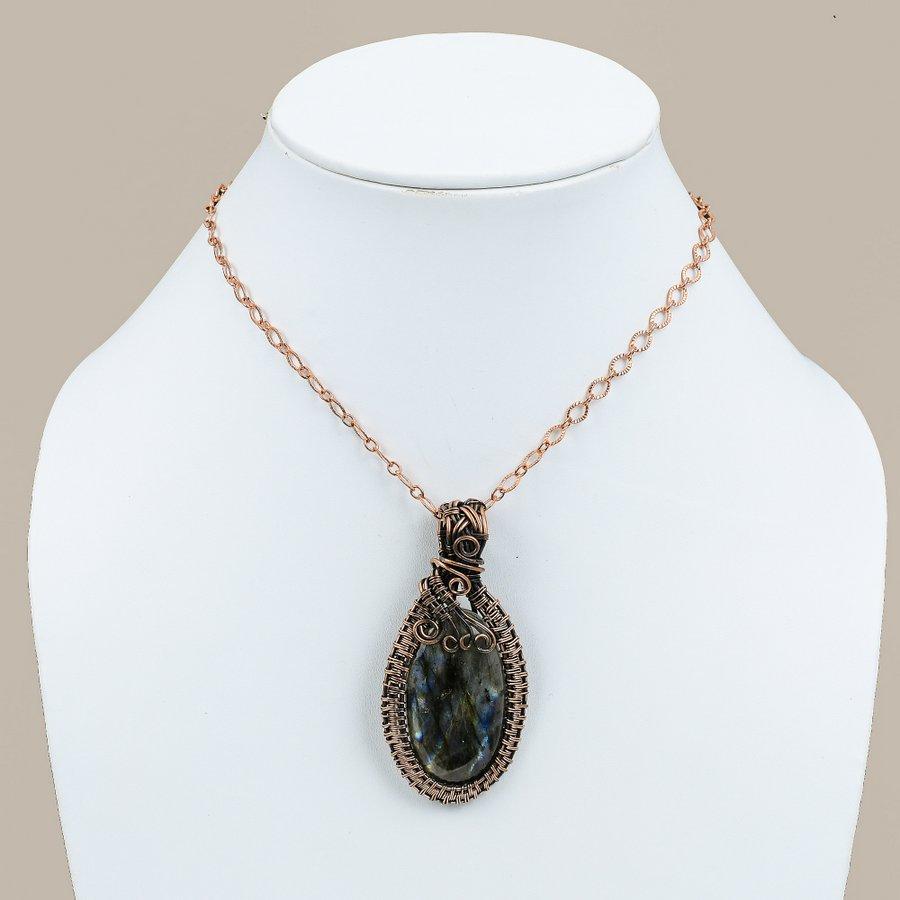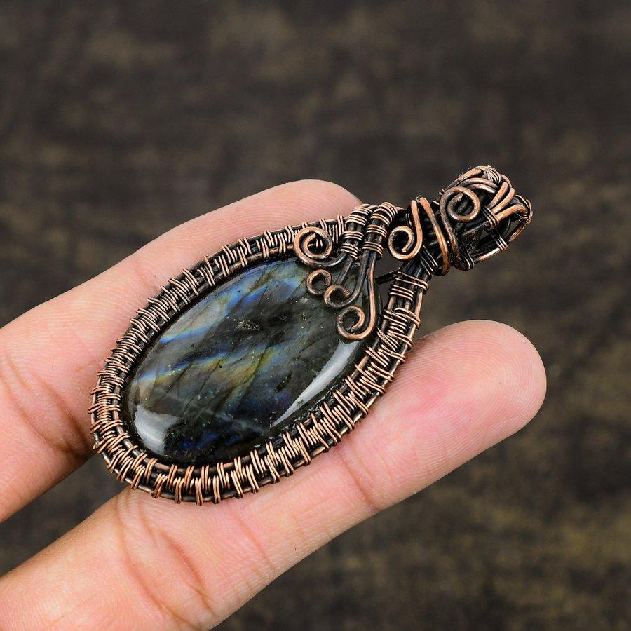 Подвеска из медной проволоки ручной работы с лабрадоритом 2,60 дюйма V6s27