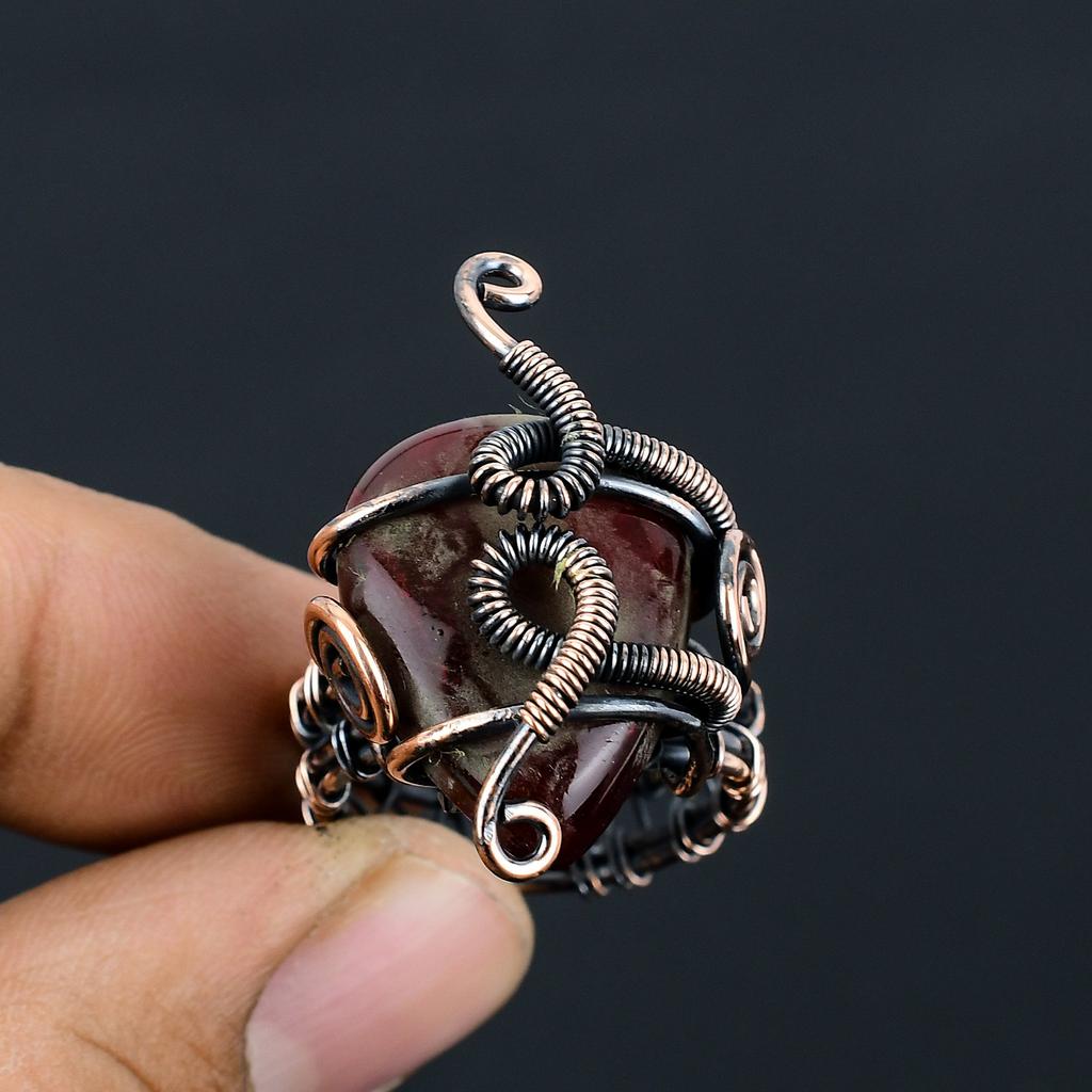 Кольцо из медной проволоки ручной работы с красным лабрадоритом, размер 9 W2G38