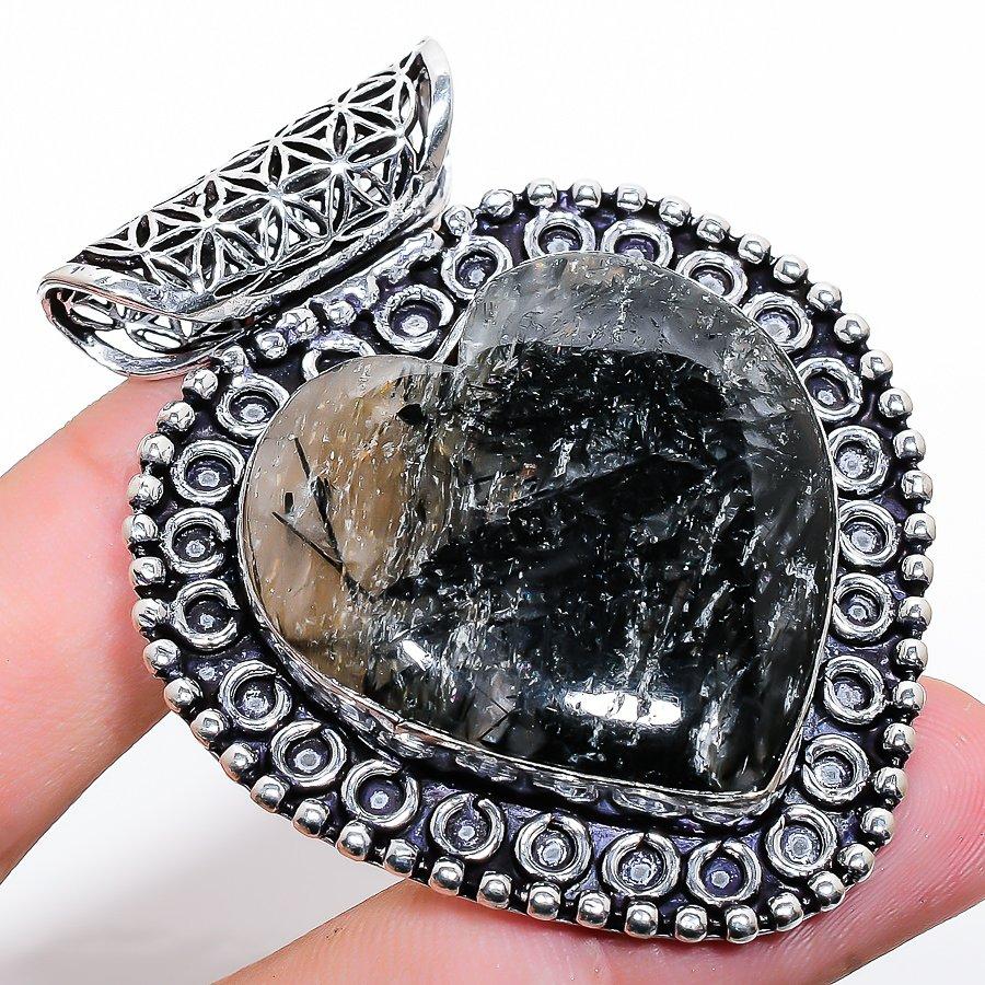 Подвеска ручной работы из стерлингового серебра 925 пробы с черным рутилом 2,29"