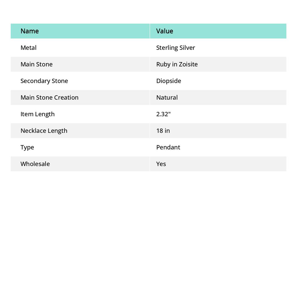 Рубин в Цоизите, Диопсид Этнический Кулон из Серебра 925 пробы 2,32" l9b27