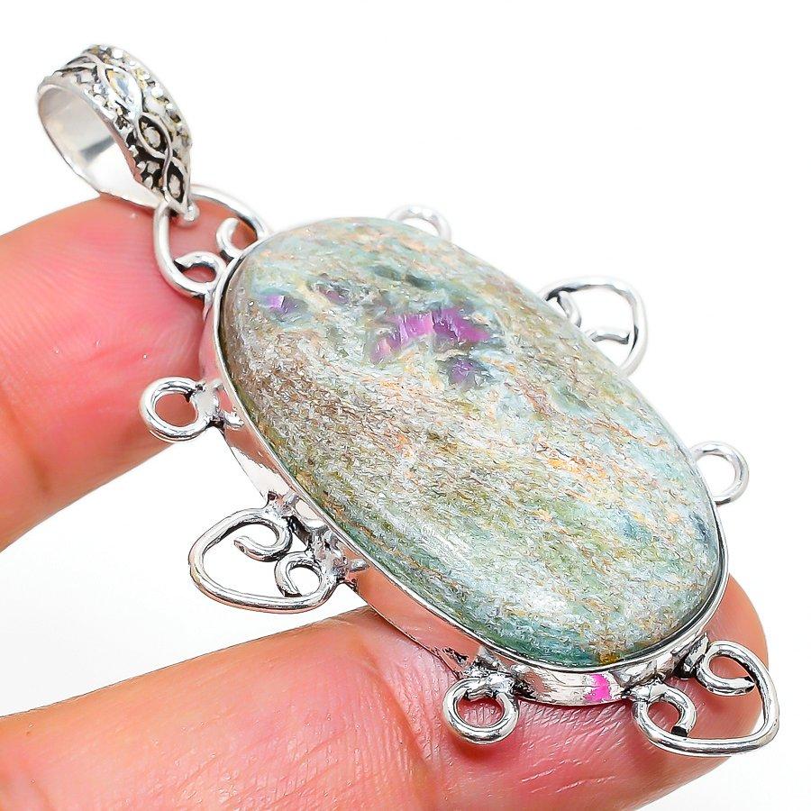 Этническая подвеска ручной работы из стерлингового серебра 925 пробы с рубином в фуксите 24,03 дюйма T5m80