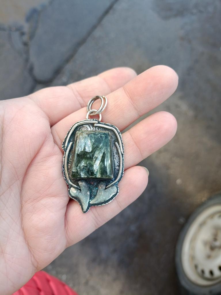 Серафинит Ручной работы Ювелирная подвеска из стерлингового серебра 925 пробы 2,40" M7M91