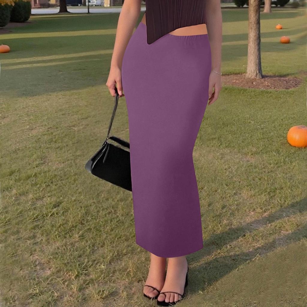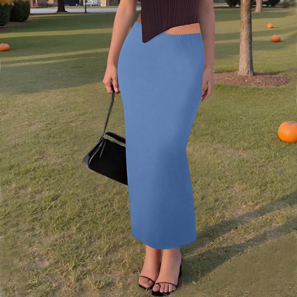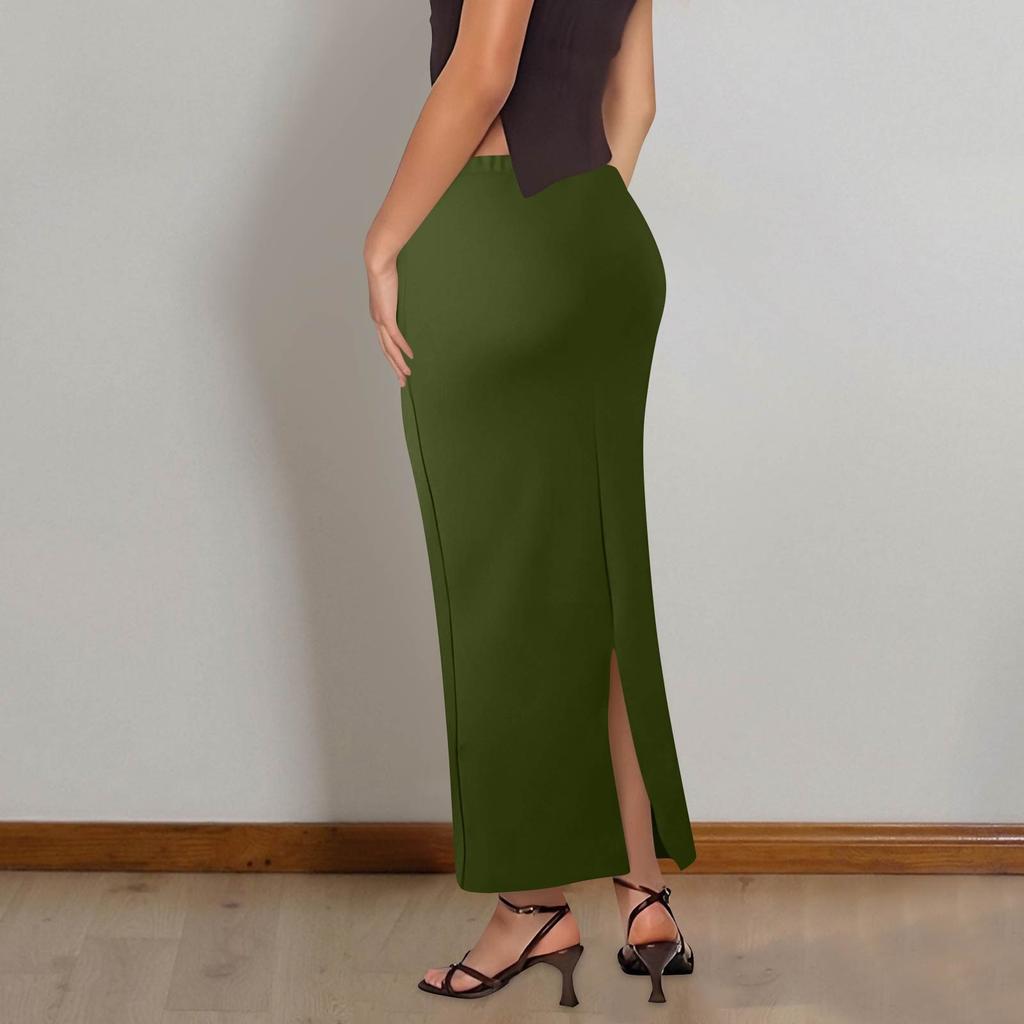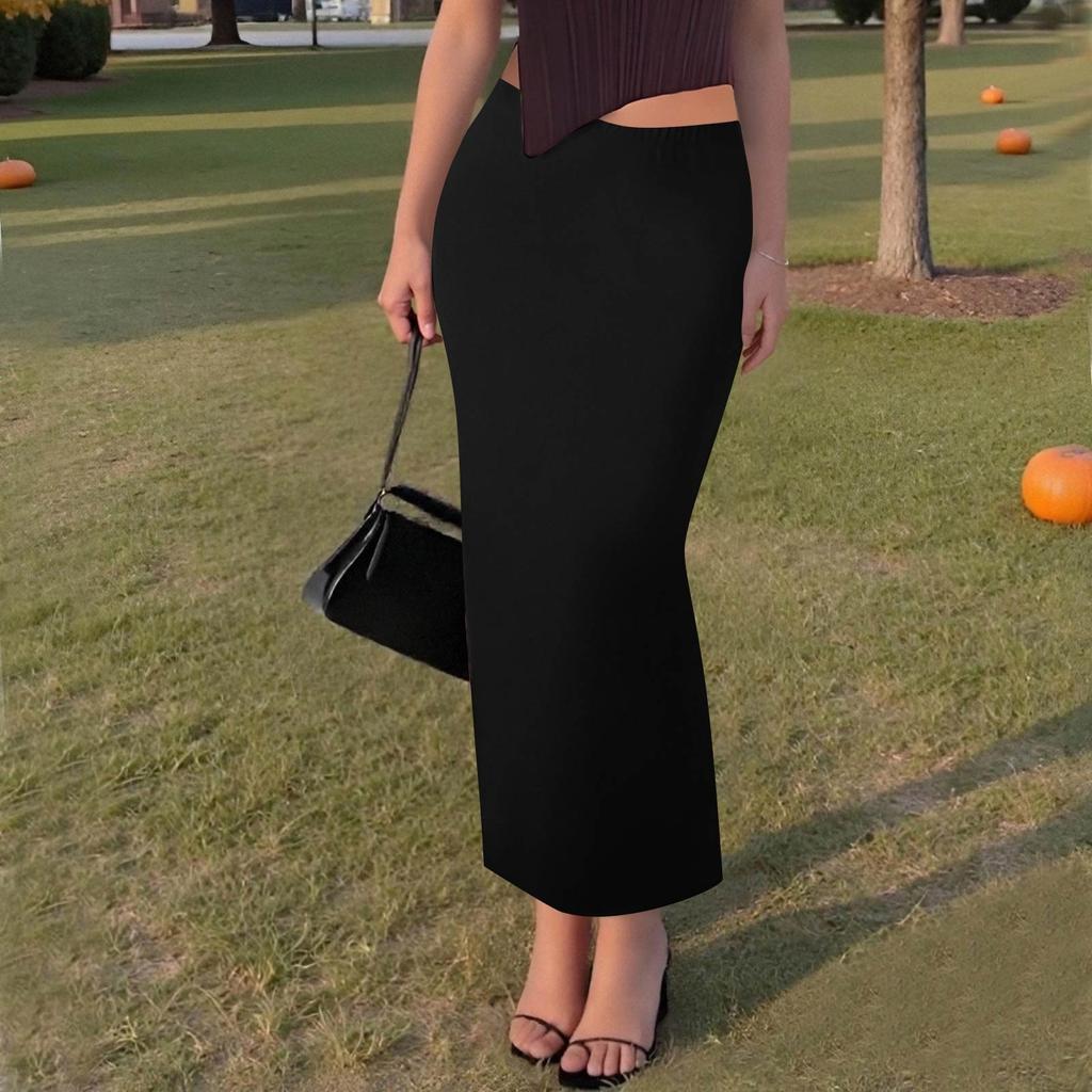 Женская повседневная модная однотонная юбка-рыбий хвост с разрезом, эластичная узкая юбка до середины тела