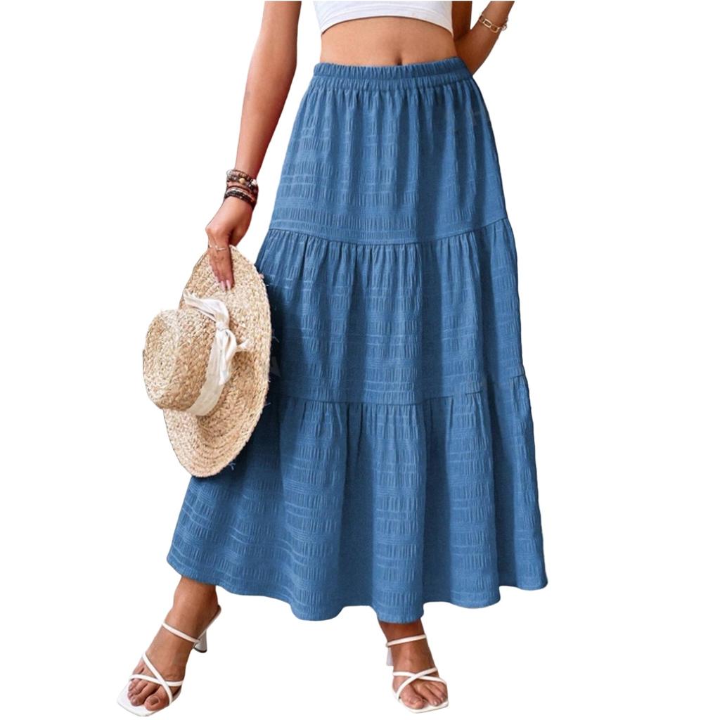 Женская модная однотонная юбка-труба с высокой талией и складками, длинная юбка-трапеция, полуюбка
