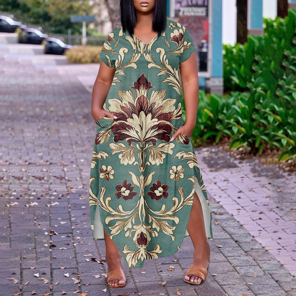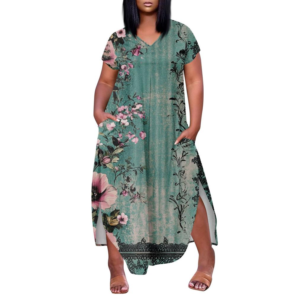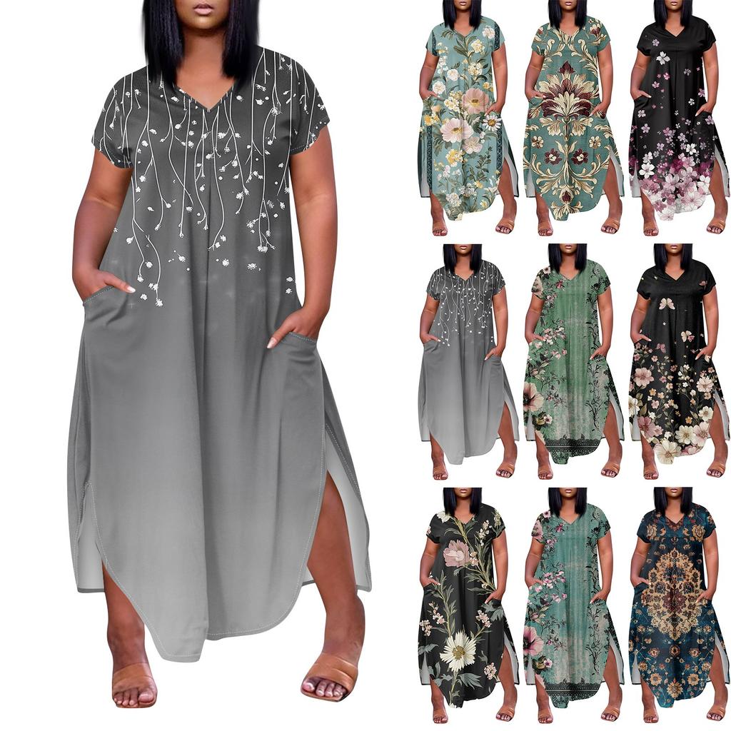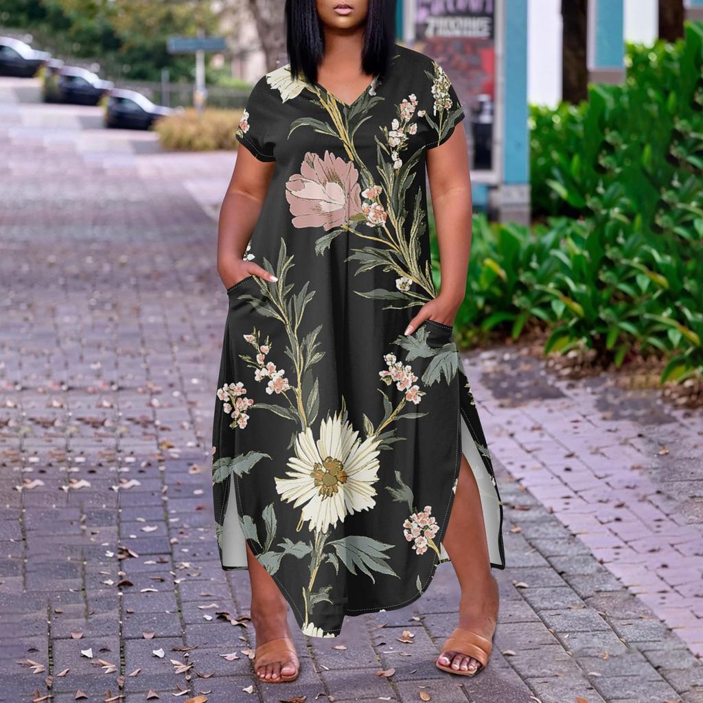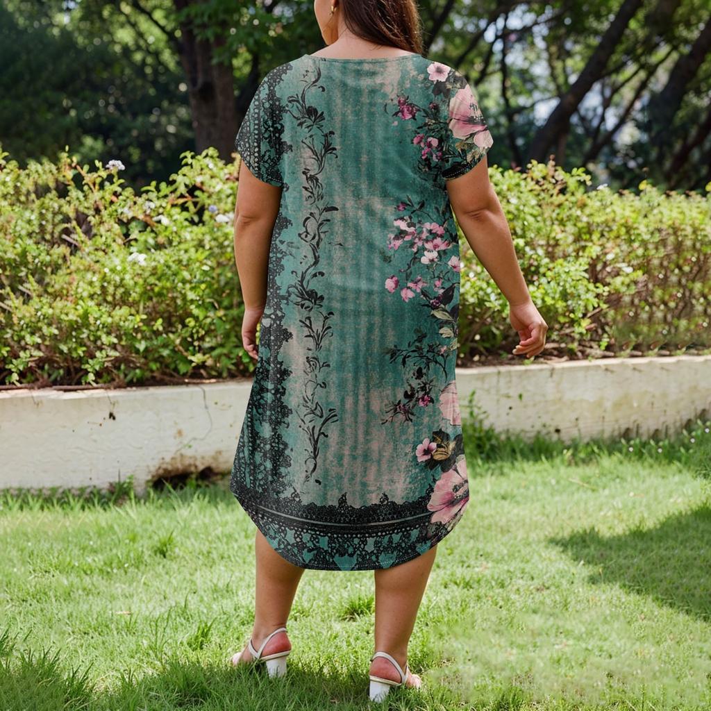 Женское повседневное платье с коротким рукавом и круглым вырезом больших размеров Temperament