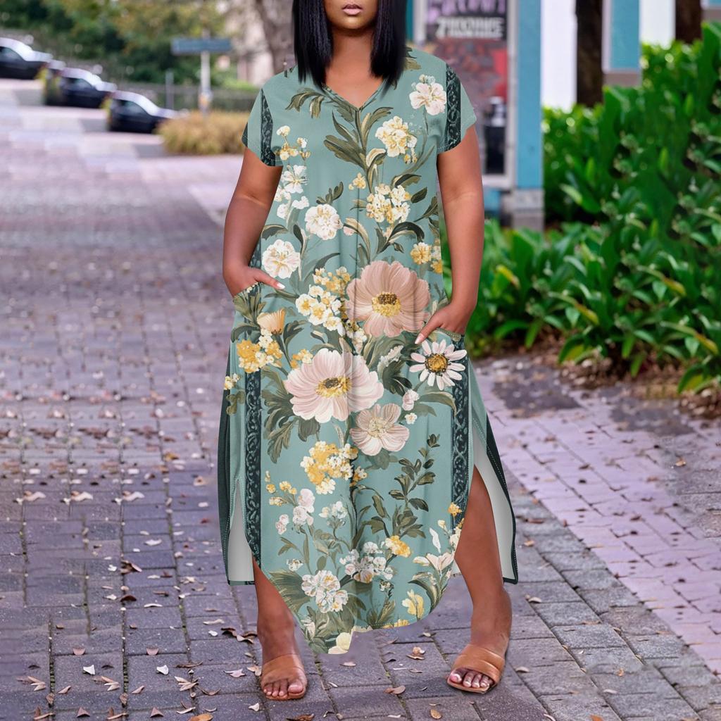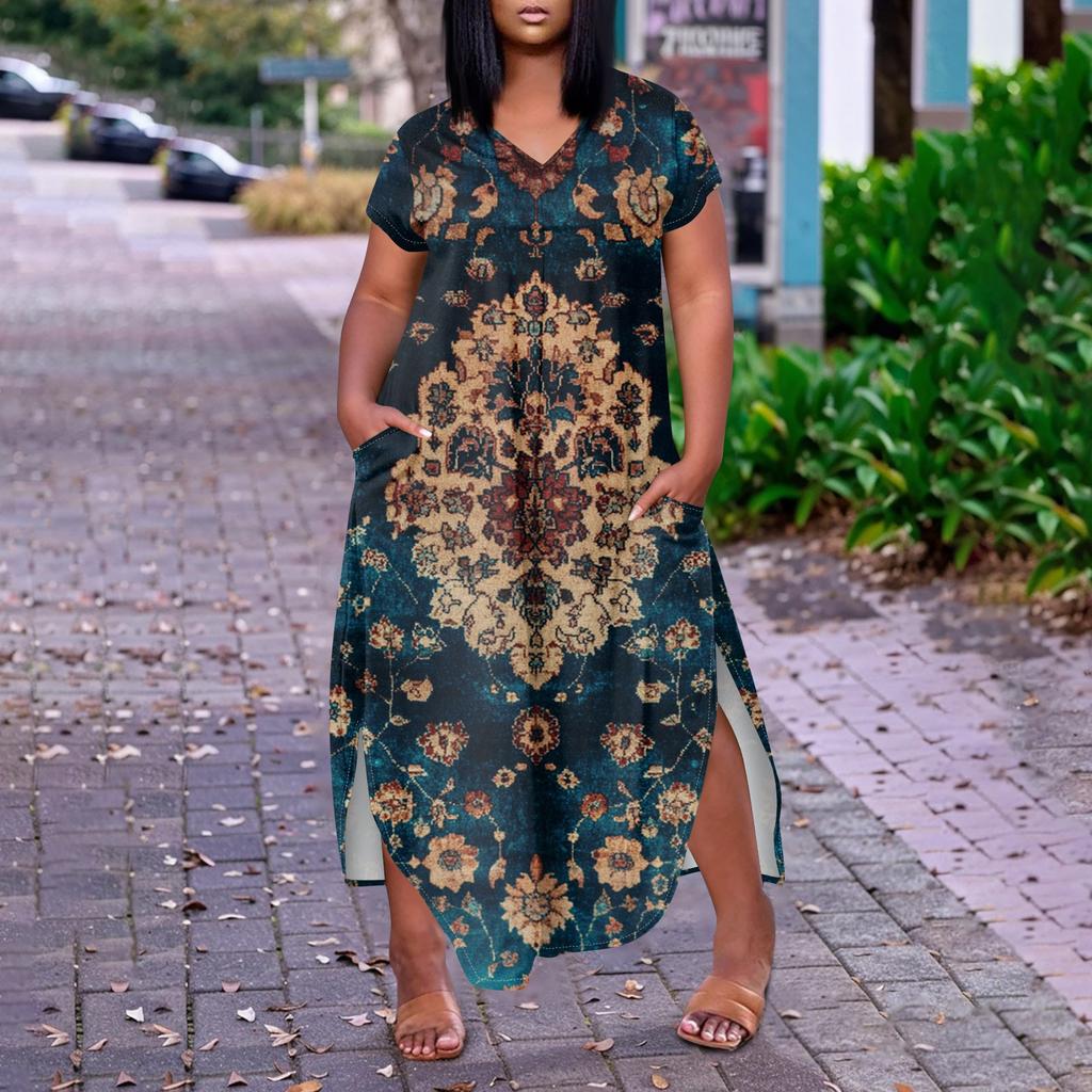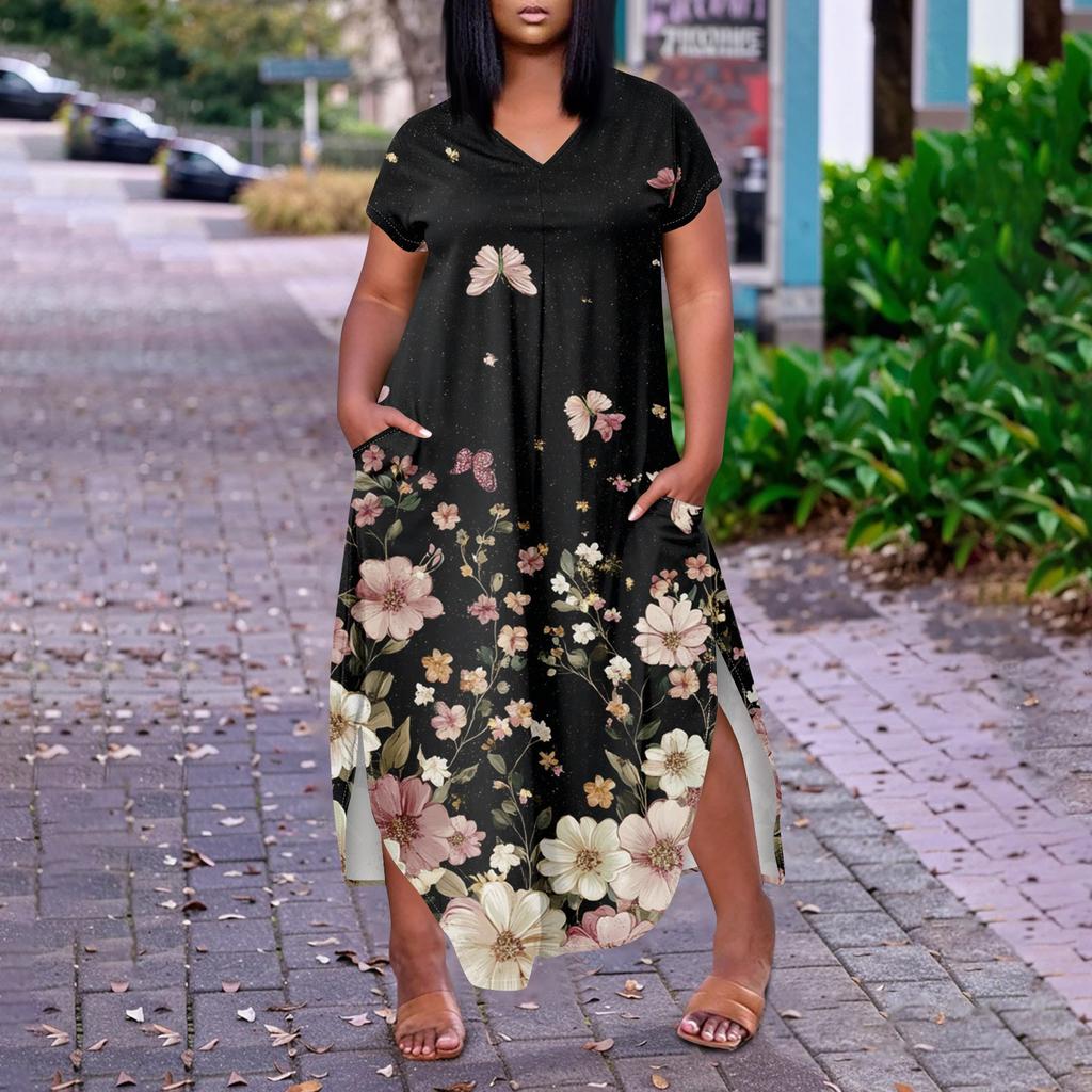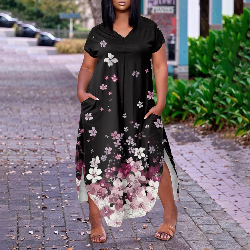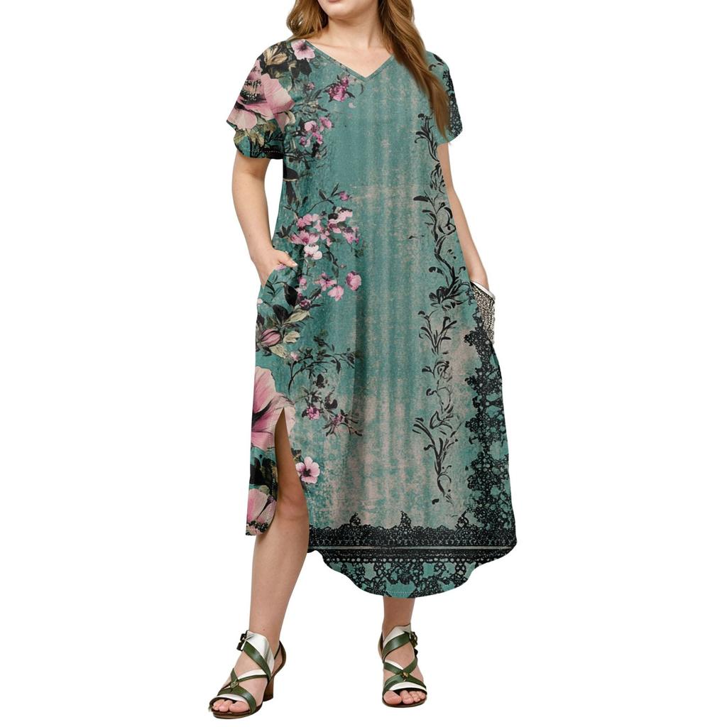 Женское повседневное платье с коротким рукавом и круглым вырезом больших размеров Temperament