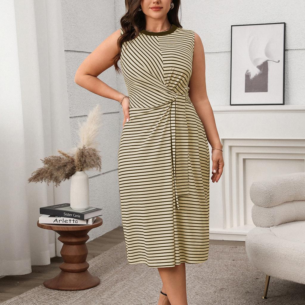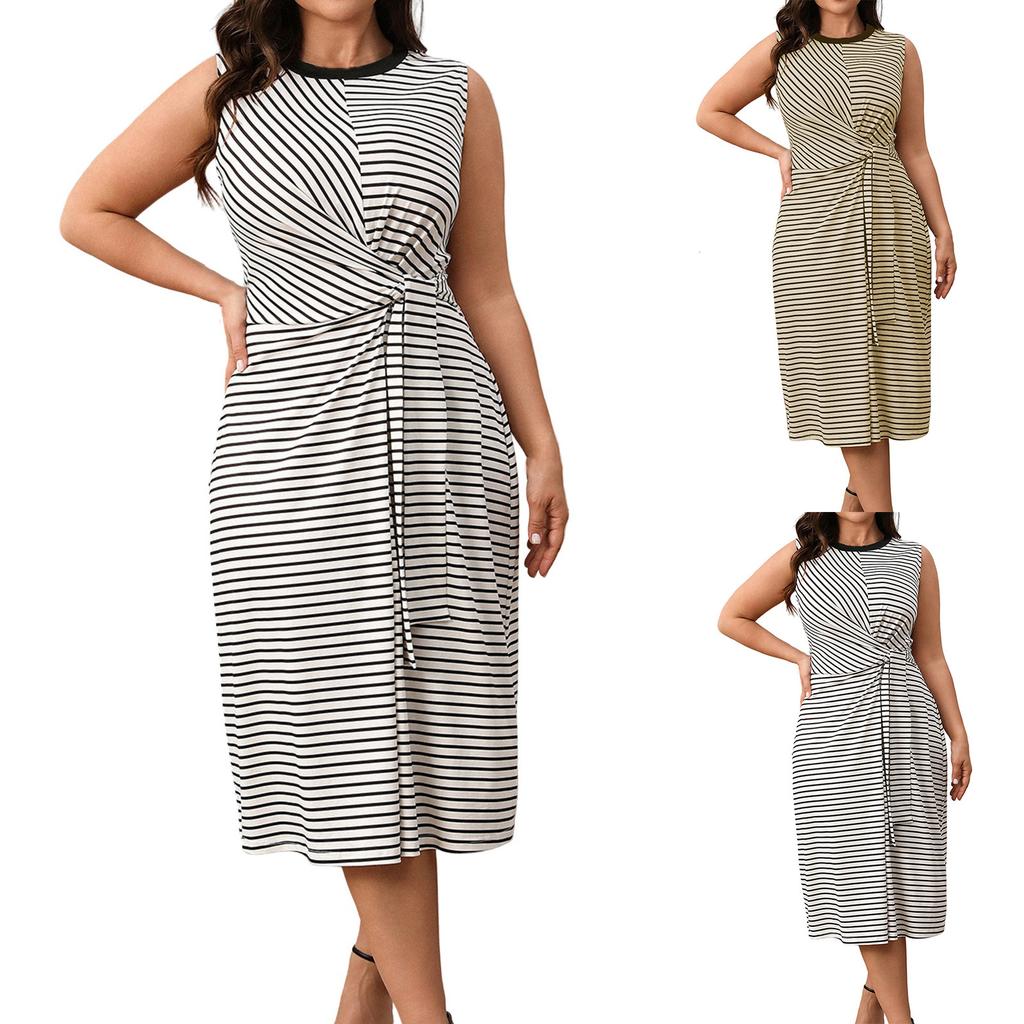 Женские модные повседневные свободные полосатые платья без рукавов с круглым вырезом большого размера