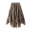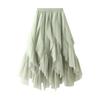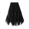 Женская модная повседневная однотонная юбка с высокой талией и оборками из сетки длиной до пола
