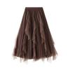Женская модная повседневная однотонная юбка с высокой талией и оборками из сетки длиной до пола